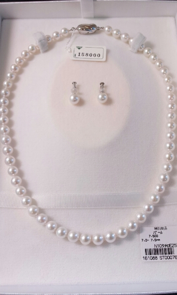鑑別書付きの綺麗なテリの7.0~7.5mm玉の真珠ネックレスです。