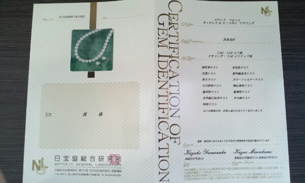 日宝協総合研究所の真珠鑑定鑑別書が付いています。