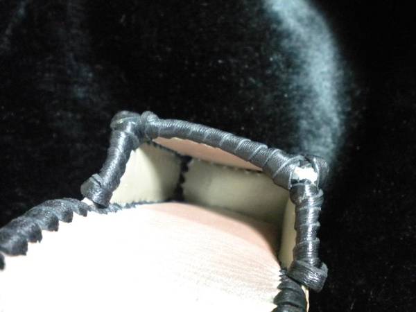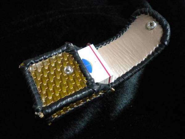 ケース周囲は、ブラックレザーを使用して、かがり仕上げをしています。