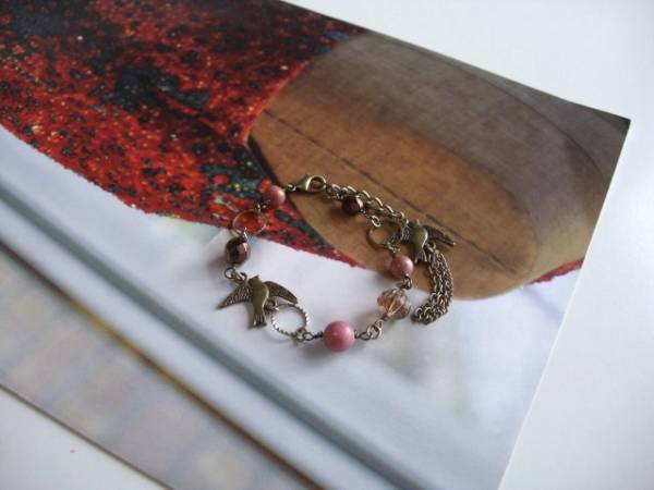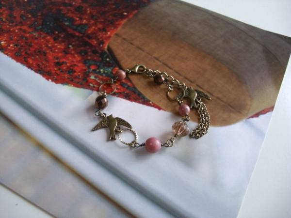 パリの衣裳部屋・・シリーズです♪屋根裏の宝石箱・・シックなロードナイトのブレスレットです♪ダークピンクのロードナイトにチェコビーズや小鳥さんのチャームを合わせてアンティークな表情です♪ロードナイトは6ミリ、8ミリの丸玉です♪小鳥さんのチャームは20ミリ位です♪長さは全長23センチ位で調節自由です♪♪♪お揃いのネックレスも出品しています♪シンプルで飽きのこないいつまでも着けられるデザインを考えて作りました!ハンドメイドをご理解頂いてノークレーム、ノーリターンでお願いします