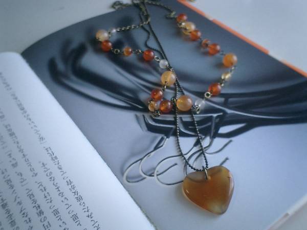 やさしい色を+して・・シリーズです♪オリエンタル気分・・シックなカーネリアンのネックレス2点セットです♪ハートや丸玉のカーネリアンを合わせて大人のロマンチックしています♪20ミリ位のハートのカーネリアンには華奢なボールチェーンを合わせました♪長さは63センチ+アジャスター12センチで最長75センチくらいです♪6ミリ、8ミリ、10ミリの丸玉のカーネリアンはランダムに繋いでマニッシュな表情です♪長さは全長72センチ位で調節自由です♪それぞれ単品やブレスレットも出品しています♪シンプルで長く着けて頂けるデザインを考えて作りました♪♪ハンドメイドをご理解頂いてノークレーム、ノーリターンでお願いします