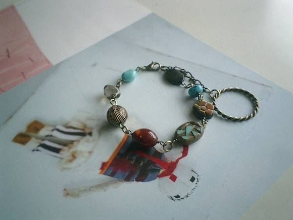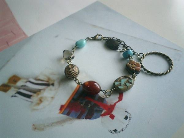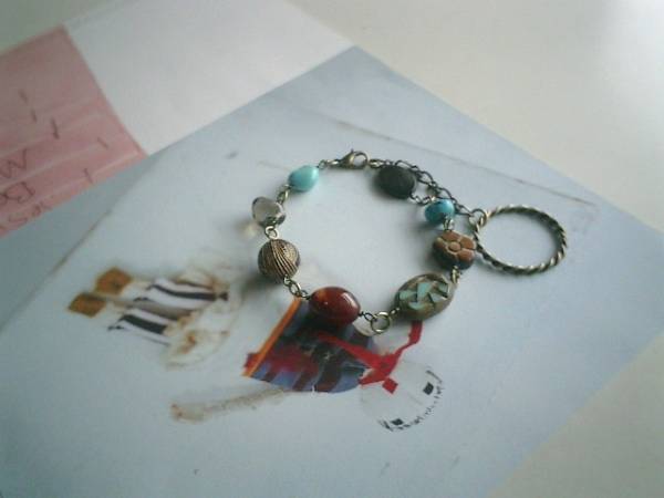 やさしい色を+して・・シリーズです♪お気に入りのドット・・個性的なターコイズのブレスレットです♪ラフタンブルのターコイズにカーネリアンやスモーキークォーツ、チェコビーズやフラワーシェルなどシックな色を合わせてオリエンタルな表情です♪8ミリから10ミリ位のターコイズに12ミリから18ミリ位までのスモーキークォーツやカーネリアンのナツメ、デザインチェコやフラワーシェルを合わせました♪長さは全長23センチ位で調節自由です♪お揃いのネックレスも出品しています♪シンプルで長く着けて頂けるデザインを考えて作りました♪♪ハンドメイドをご理解頂いてノークレーム、ノーリターンでお願いします
