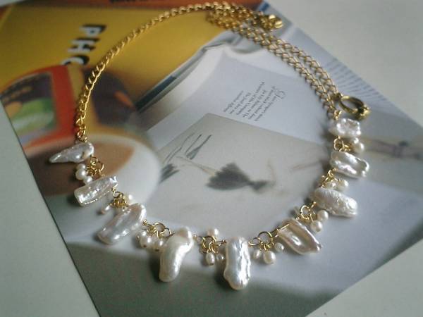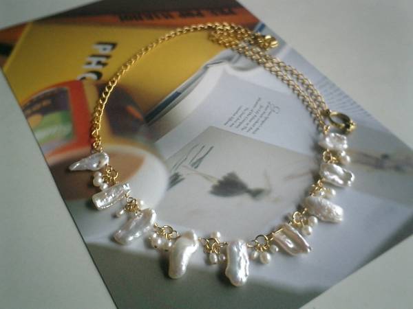 やさしい色を+して・・シリーズです♪週末の幸せ・・繊細なビワパールのネックレスです♪ふんわりやさしいオフホワイトのビワパールに小粒の淡水パールを添えてロマンチックな表情です♪ビワパールは13ミリから22ミリ位までです♪3ミリ、4ミリの淡水パールでおめかしいています♪長さは全長60センチ位で調節自由です♪チョーカー風にされても素敵です♪♪お揃いのブレスレットやピアスも出品しています♪シンプルで長く着けて頂けるデザインを考えて作りました♪♪ハンドメイドをご理解頂いてノークレーム、ノーリターンでお願いします