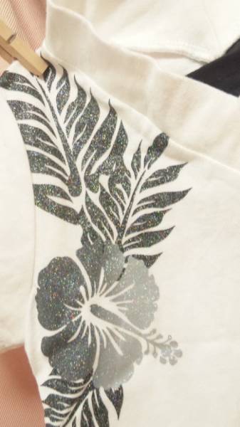 ◆キラキララメのハイビスカス&リーフプリント♪ロゴやギャルプリントも格好いいVネックTシャツ