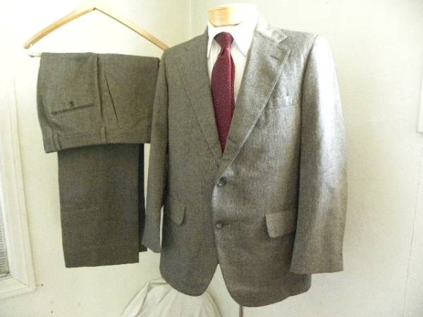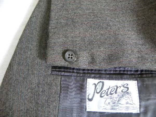 色はブラウンとベージュのヘリンボーンに薄くオレンジブラウンとグレーのストライプ。素材表示がありませんが、ウールのようで春秋冬に着用いただけそうです。