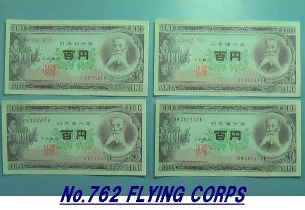 日本銀行券B号100円・板垣退助100円札の合計4枚セットとなります。
