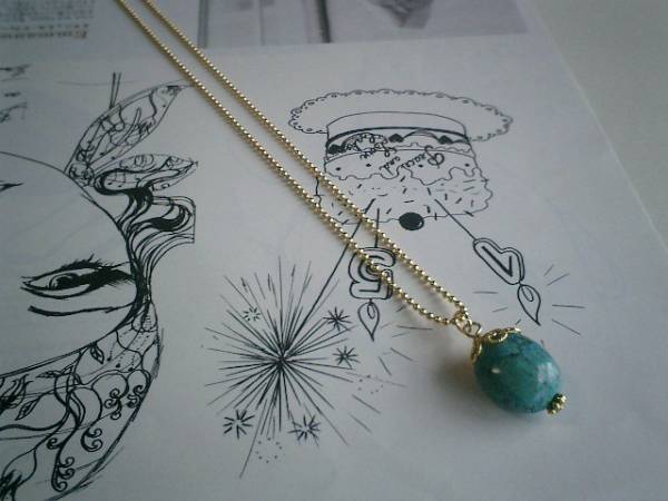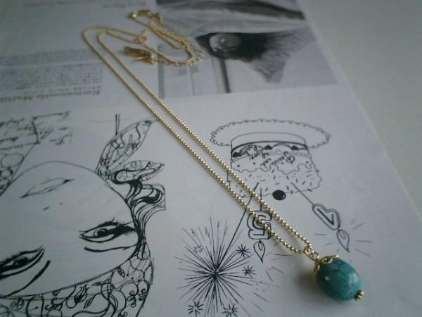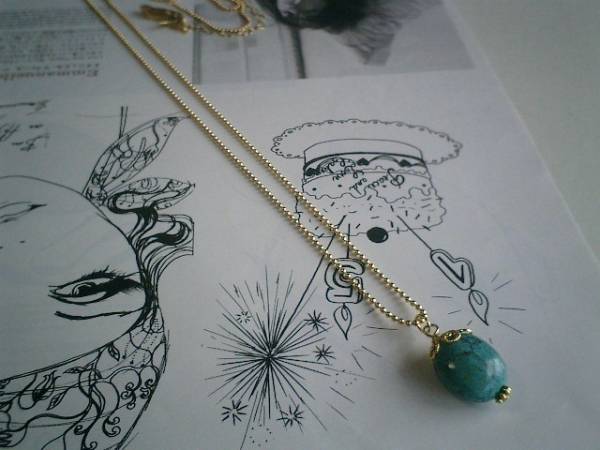 ニューヨーク・デッサン・・シリーズです♪クラシカルな座金・・ターコイズのネックレスです♪タンブルのターコイズが大人っぽい表情です♪クラシカルな座金でおめかししたターコイズのタンブルは18ミリ×15ミリ位です♪華奢なボールチェーンを合わせました♪長さは78センチ+アジャスター14センチで最長92センチ位です♪お揃いのネックレスやブレスレットやピアスも出品しています♪シンプルで飽きのこないいつまでも着けられるデザインを考えて作りました!ハンドメイドをご理解頂いてノークレーム、ノーリターンでお願いします