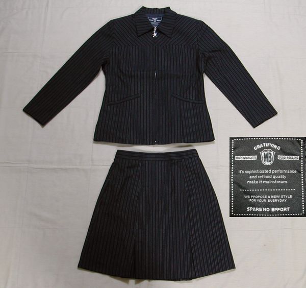 上着はジップアップ、スカートのウエストにはゴムのアジャスター付きです。