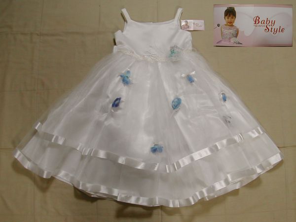 青い花はピン留めで外せ、背中に大きなリボン、スカート裏にはバニエが付いています。