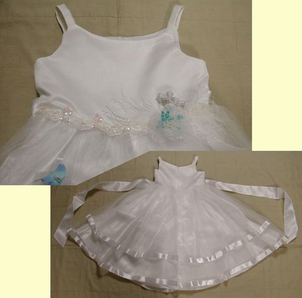 ■タグ付新品:120白いドレス 外せる立体花柄&大きいリボン DmU56