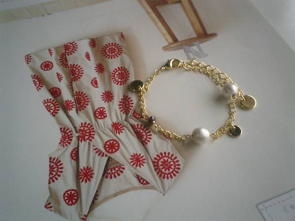 やさしい時間・・シリーズです♪オフホワイトのコットン・パールのブレスレットです♪軽いので長く着けていただけます♪深い赤のガーネットやメタル・コインを合わせてキュートな表情です♪コットン・パールは8ミリ、ガーネットは3×5ミリ位です♪長さは全長23センチ位で調節自由です♪お揃いのネックレスやピアスも出品しています♪シンプルで飽きのこないいつまでも着けられるデザインを考えて作りました!ハンドメイドをご理解頂いてノークレーム、ノーリターンでお願いします