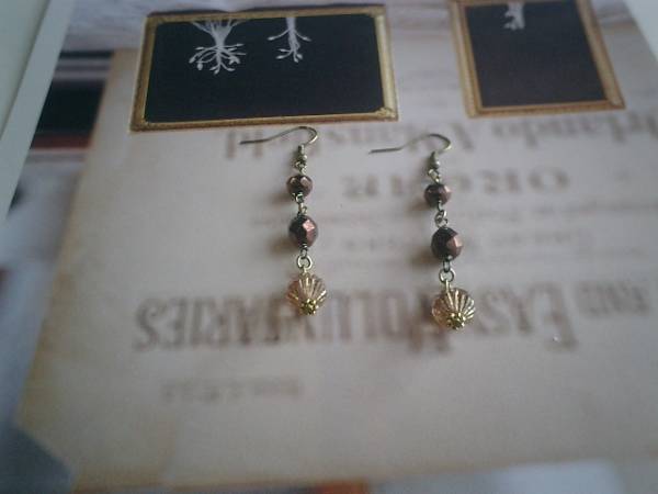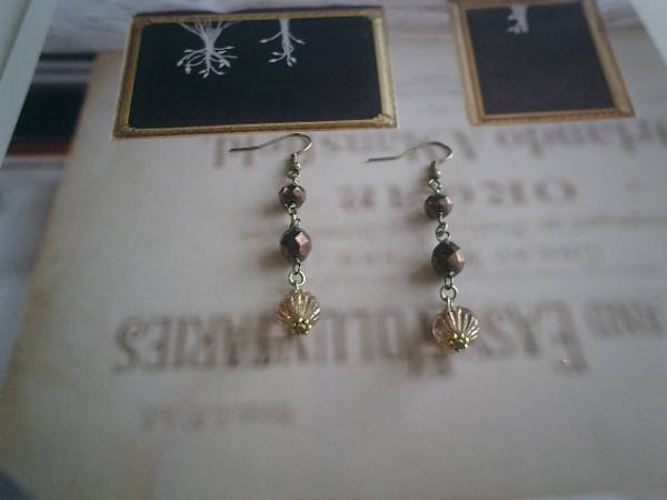 ロマンチック・セレクト・・シリーズです♪琥珀色の夢・・神秘的なチェコのデザインビーズのピアスです♪ペア1組です♪シックな琥珀色でまとめて大人のロマンチックしています♪9ミリのトパーズ色のチェコビーズはダークブラウンのチェコパールを合わせました♪長さは全長7センチ位です♪イヤリングにも変更出来ます♪お揃いのネックレスやブレスレットも出品しています♪♪シンプルで飽きのこないいつまでも着けられるデザインを考えて作りました♪ハンドメイドをご理解頂いてノークレーム、ノーリターンでお願いします
