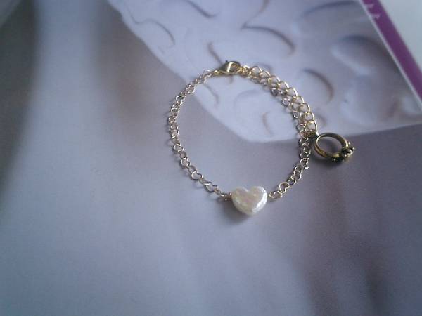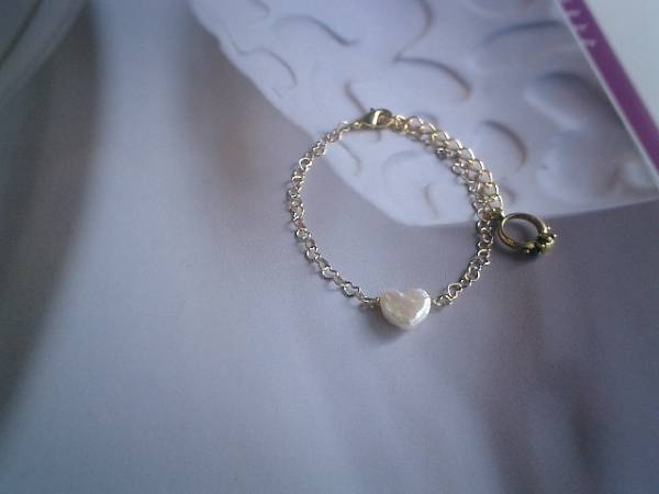 素敵・マニア・・シリーズです♪パール・ハート・・繊細な淡水パールのブレスレットです♪キュートなハートのブレスレットです♪小さめのハートが大人のロマンチックしています♪12ミリ位のハートの淡水パールにハートのデザインチェーンを合わせました♪長さは全長23センチ位で調節自由です♪お揃いのブレスレットやネックレスやピアスも出品しています♪シンプルで飽きのこないいつまでも着けられるデザインを考えて作りました♪ハンドメイドをご理解頂いてノークレーム、ノーリターンでお願いします
