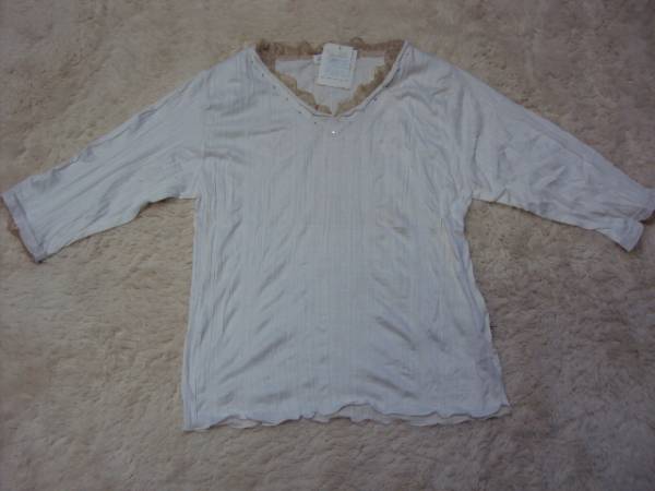 *新品東京購入ファッション清楚な白花柄レース姫フリル七分袖カットソートップスMサイズ