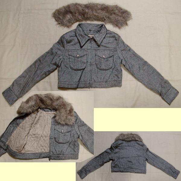 ■USED:丈の短い中綿入ジャンパー 外せるファー襟付11AR DmU03