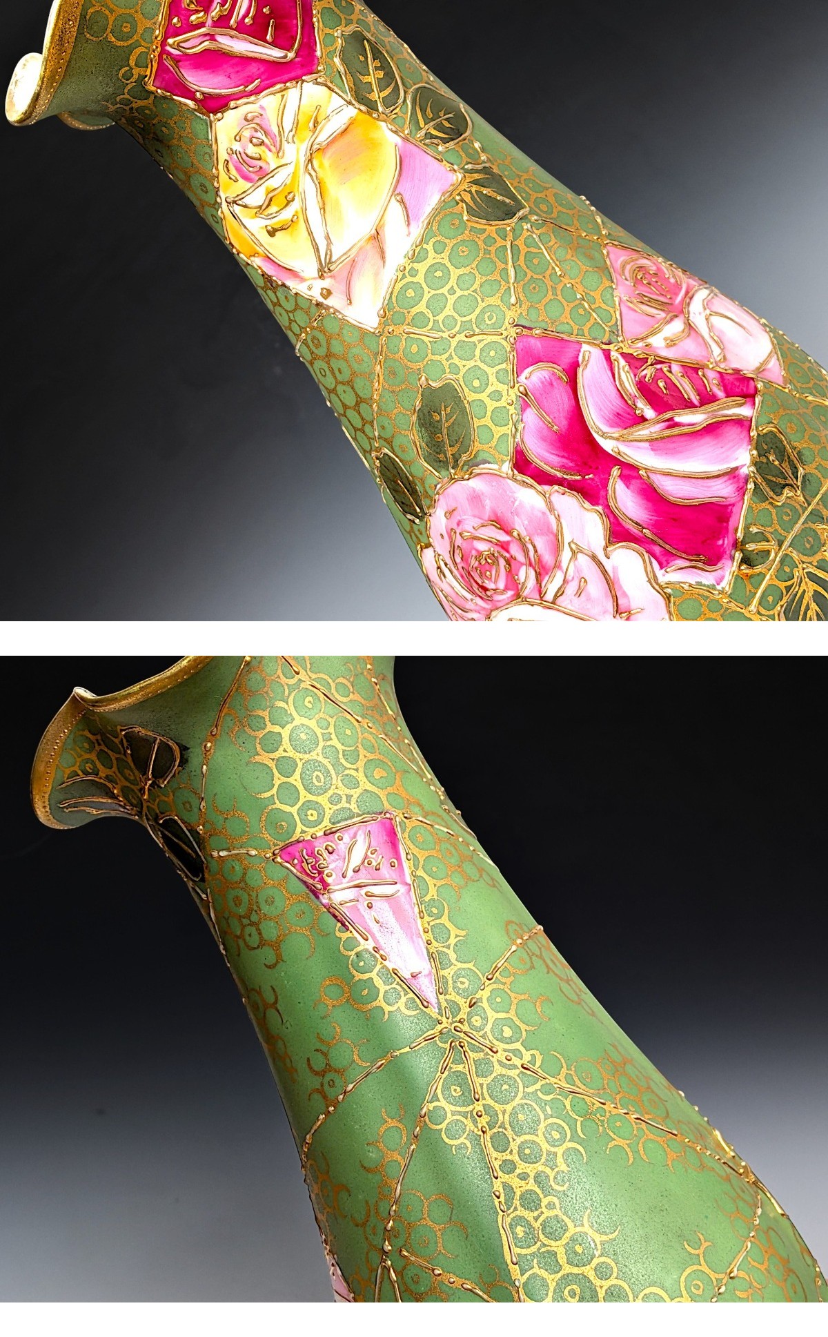 1891年~1915年頃 オールドノリタケ 金盛 アールヌーヴォー 薔薇図紋 花瓶 | ||||
