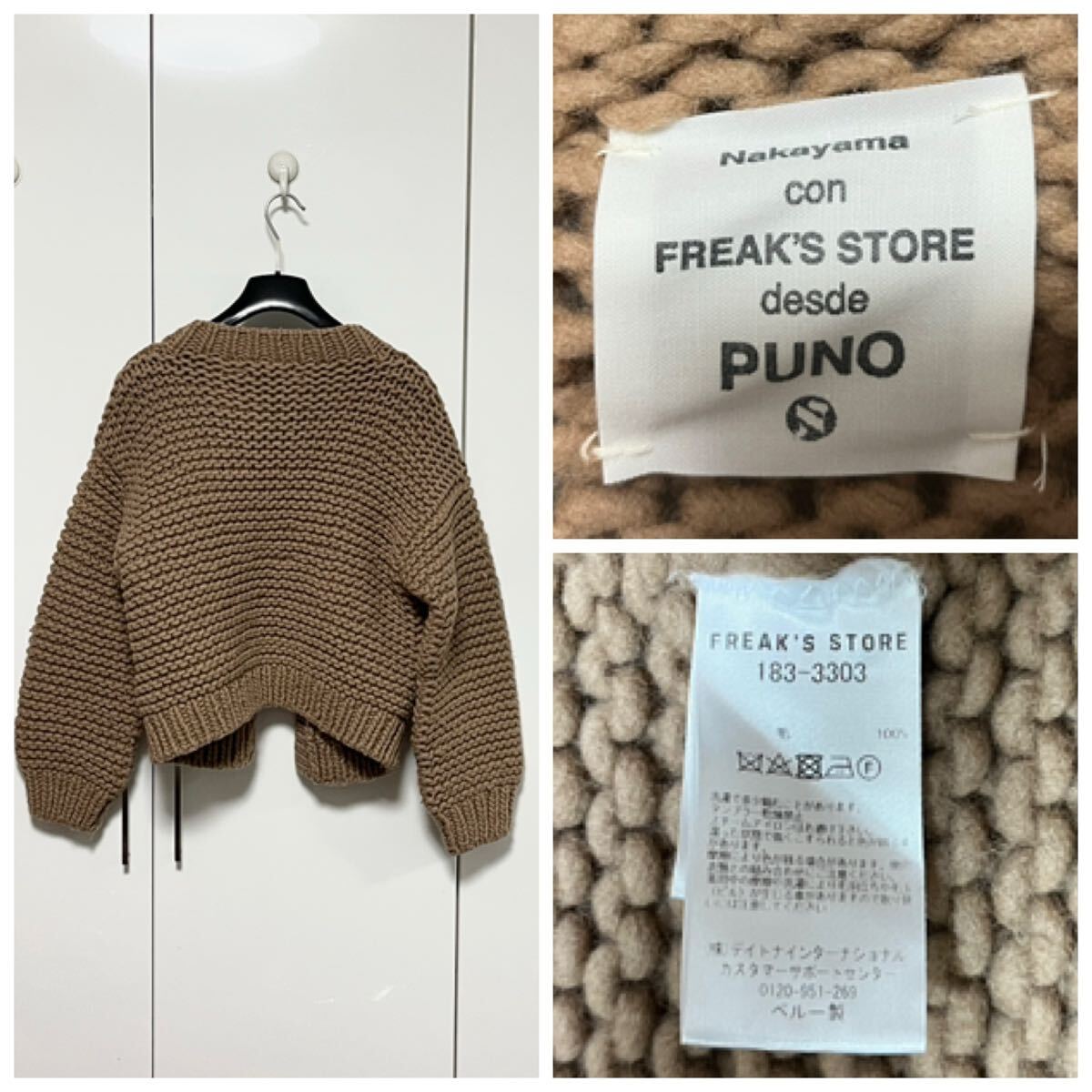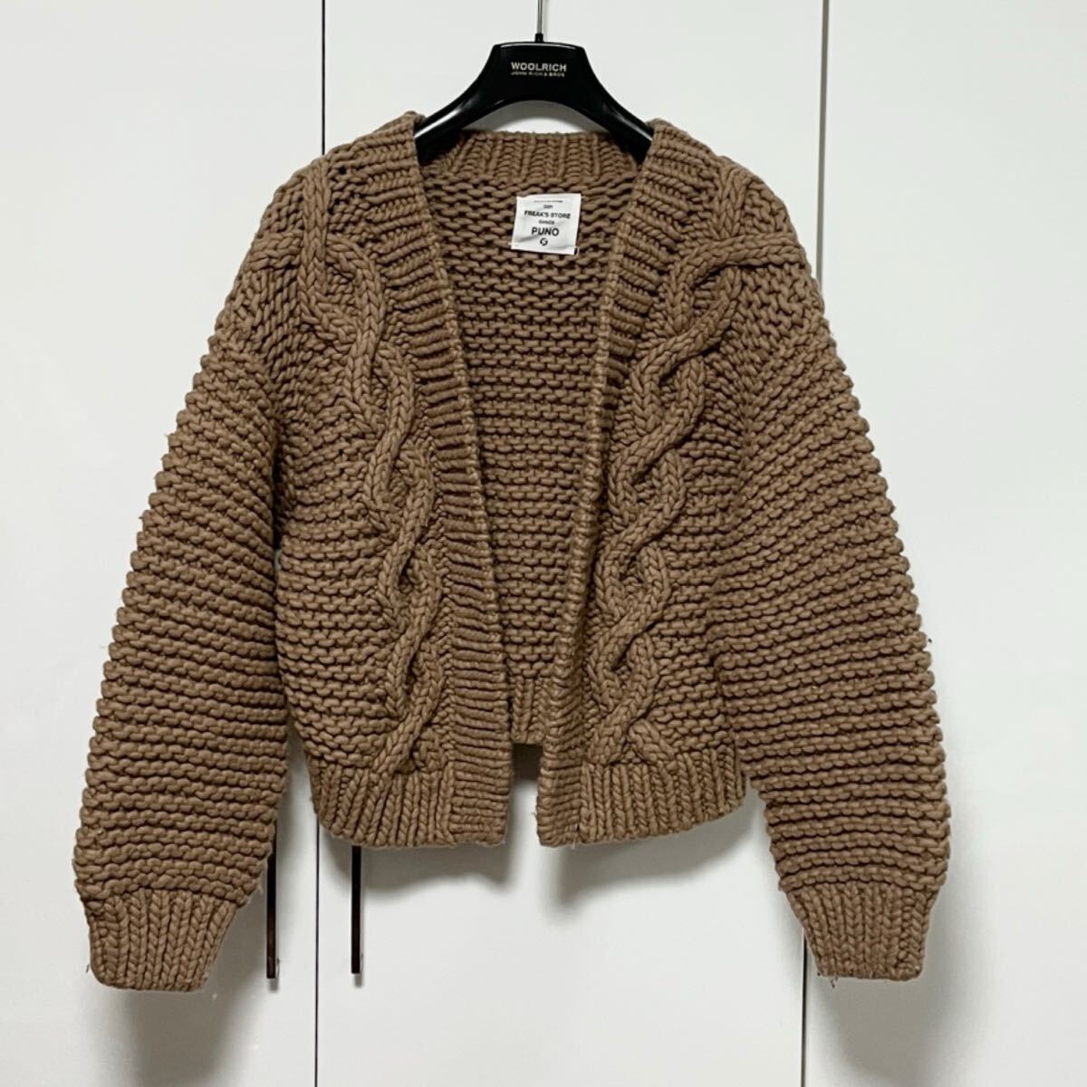 フリークスストアのペルーボリュームハンドニット カーディガンです。特筆する汚れやダメージはありません。着用数回で使用感わずかな10中8.5〜9程度の美品です。