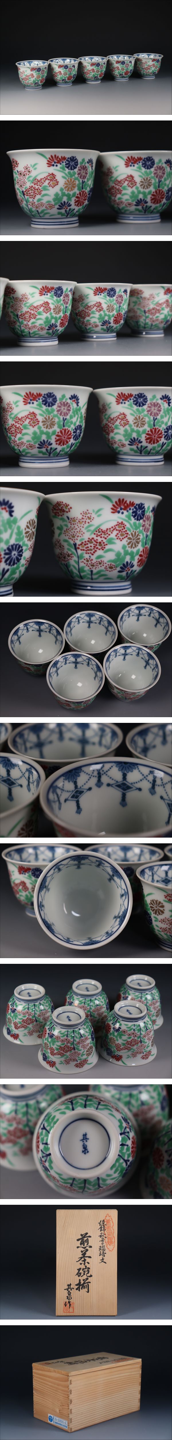 商品説明 | 商品名:蔵出し品 有田焼 其泉 染錦秋草瓔珞文 煎茶碗揃 付属品:共箱あり。 サイズ:高さ6cm、口径7,7cm、高台3,9cm。 状態:無傷になります。 |