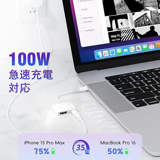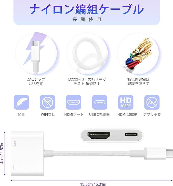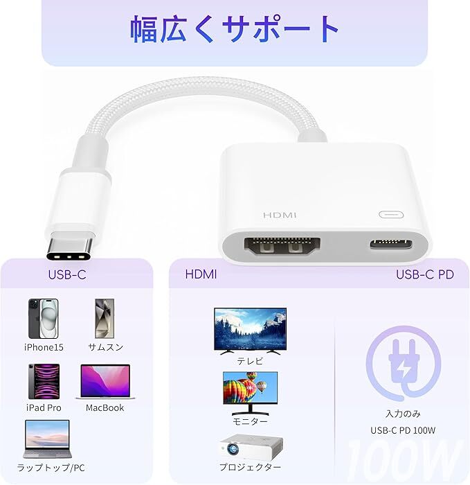 Amazon | USB Type C HDMI変換アダプタ【2024新登場】高機能版 USB C HDMI 変換 タイプc 4K@60HZ 遅延なし音声同期出力 100W急速充電 電源不要 設定不要 hdmi type-c 変換アダプタ for iPhone 15 対応 15 Pro/16/Pro Max/MacBook