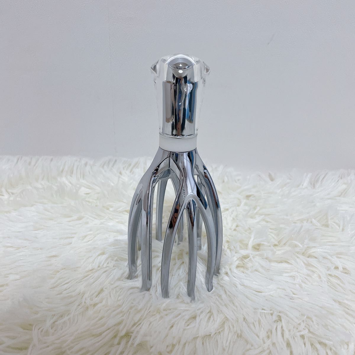 5本の爪のようなデザインが特徴で、頭皮をしっかりとマッサージします。金属とプラスチックの組み合わせにより、耐久性と使いやすさを兼ね備えています。