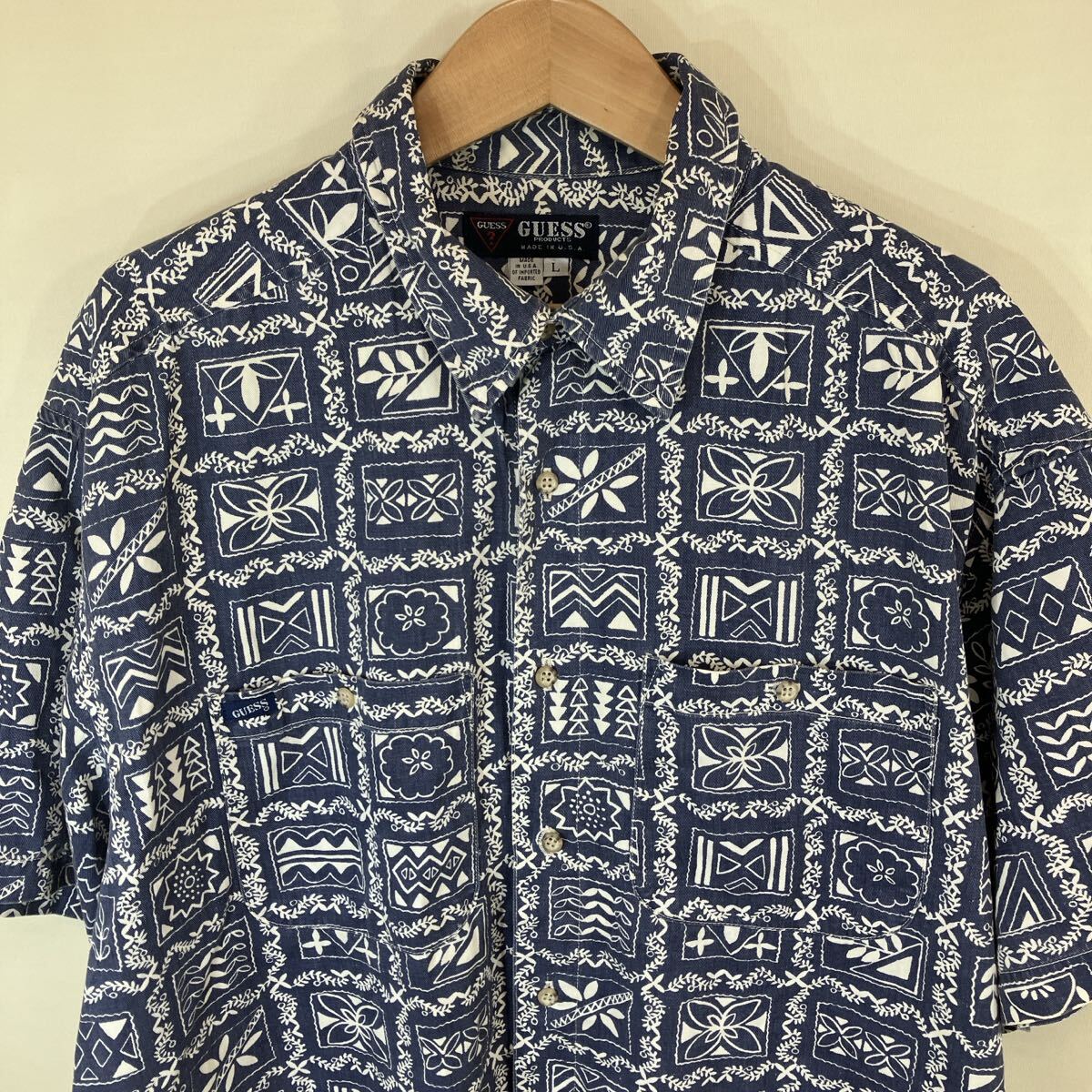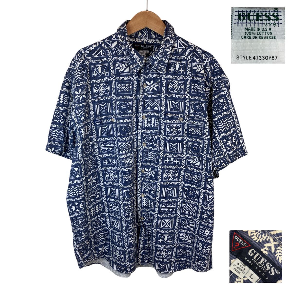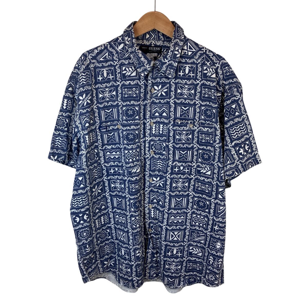 80-90s 80-90年代 GUESS ゲス men's メンズ ハワイアンシャツ アロハシャツ ラハイナ柄 半袖 シャツ ヴィンテージ ビンテージ レトロ オールド アメカジ used 古着