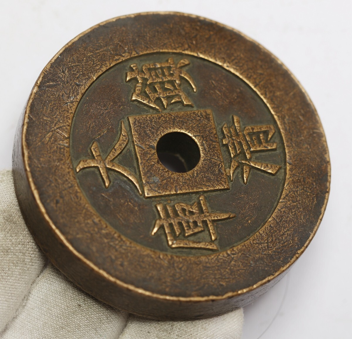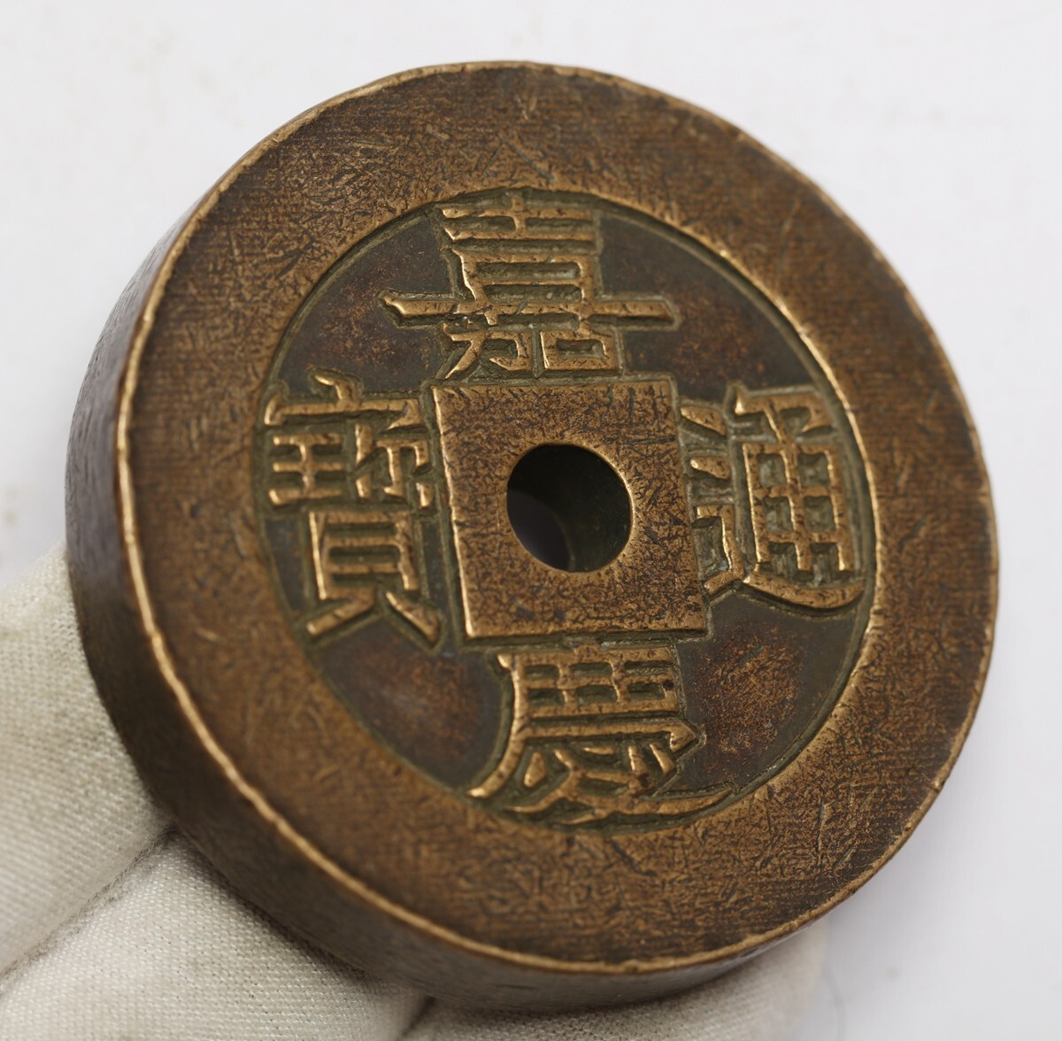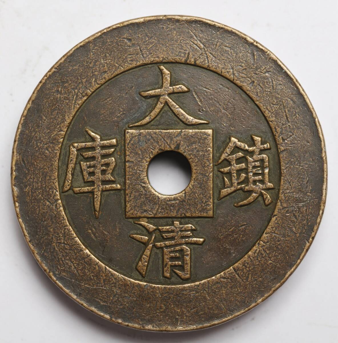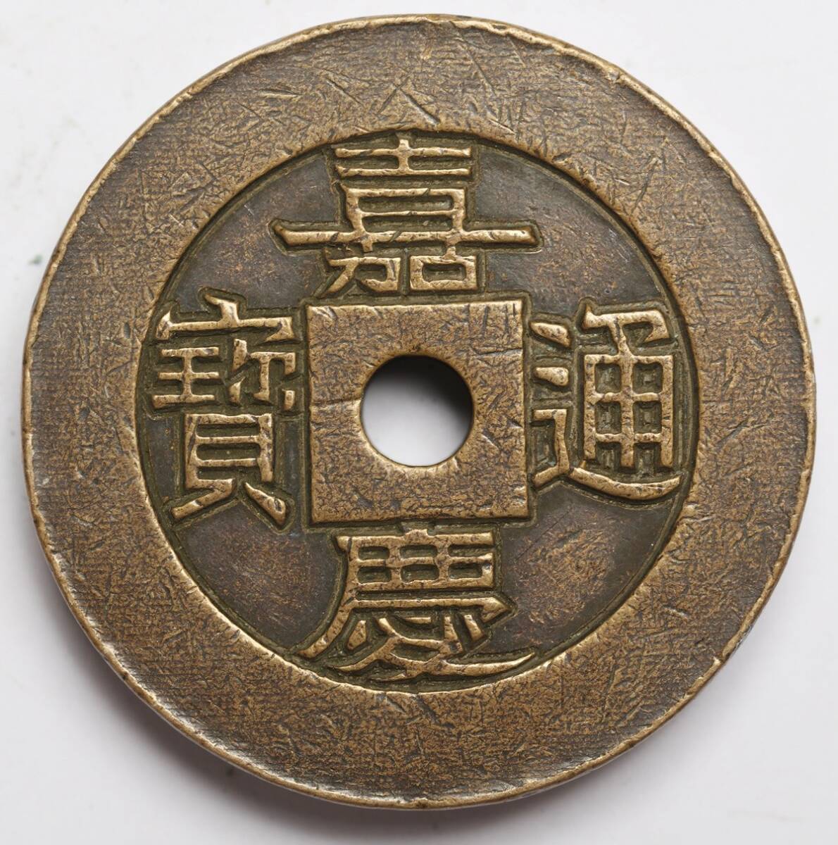 旧家蔵出し 中国古錢 清代 嘉慶通寶 背 大清鎮庫 厚肉 銅貨 銅錢 古美術品 収集家【SS】199.05g 57.1x10.2mm