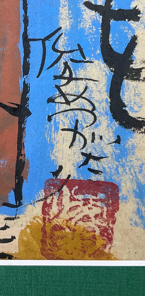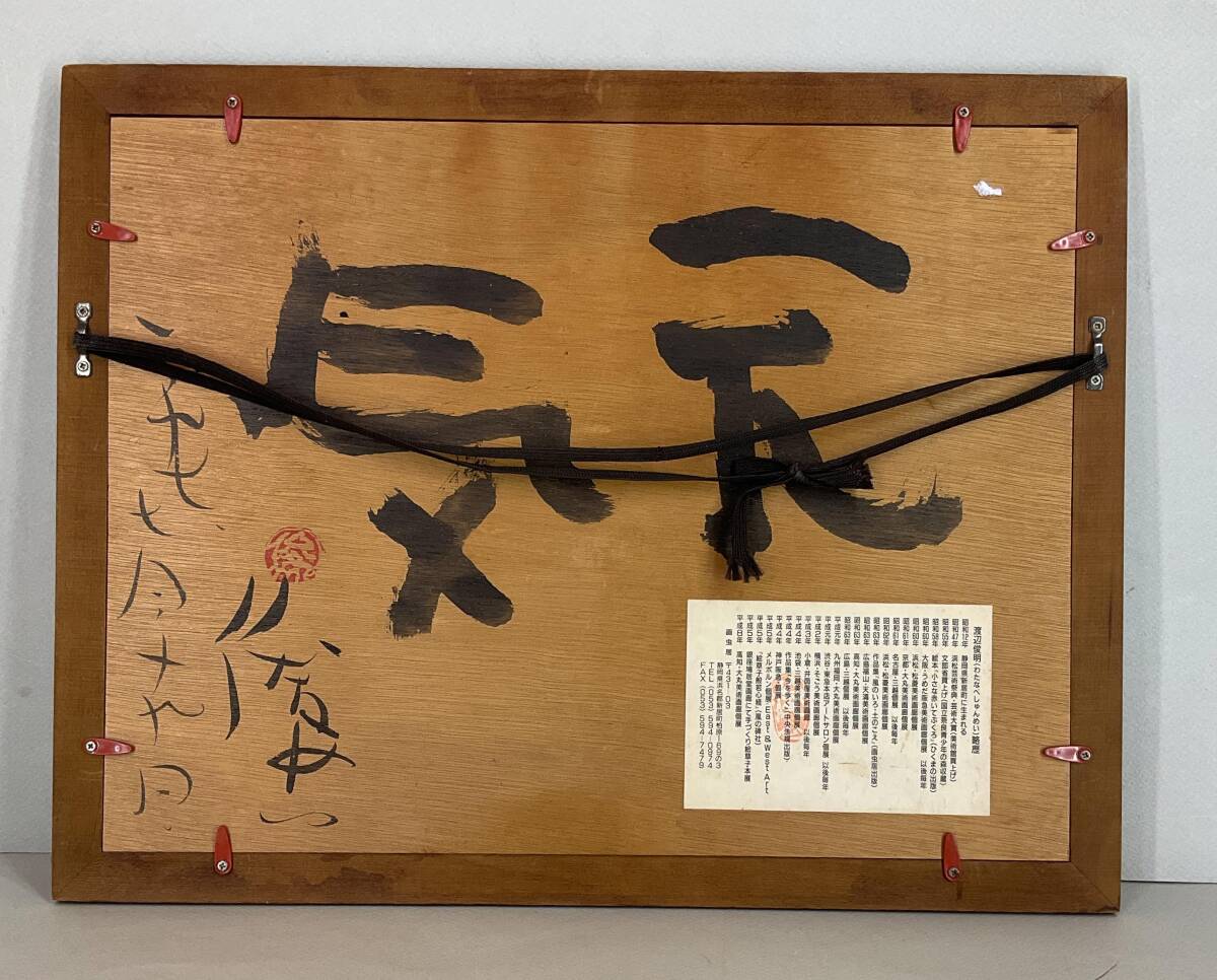 【真作】《墨彩画》渡辺俊明 「土に足をつけて」 1997年 裏面にもサイン 額装 民画家 静岡
