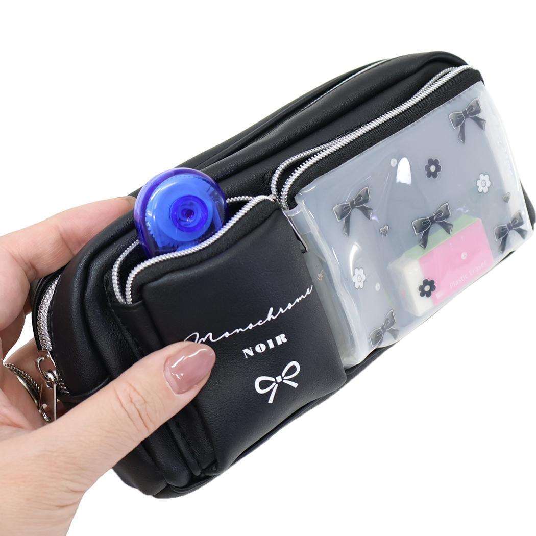 ペンケース Wクリアポケットペンポーチ モノクローム ノワール クーリア 筆箱 新学期準備文具 かわいい グッズ