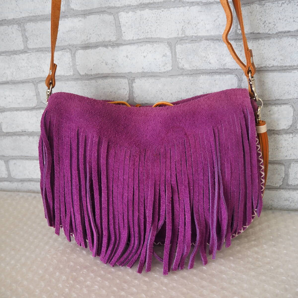 *FUNNY/ファニー*Soft Fringe Bag*スエードフリンジ*レザー*ショルダーバッグ*パープル*