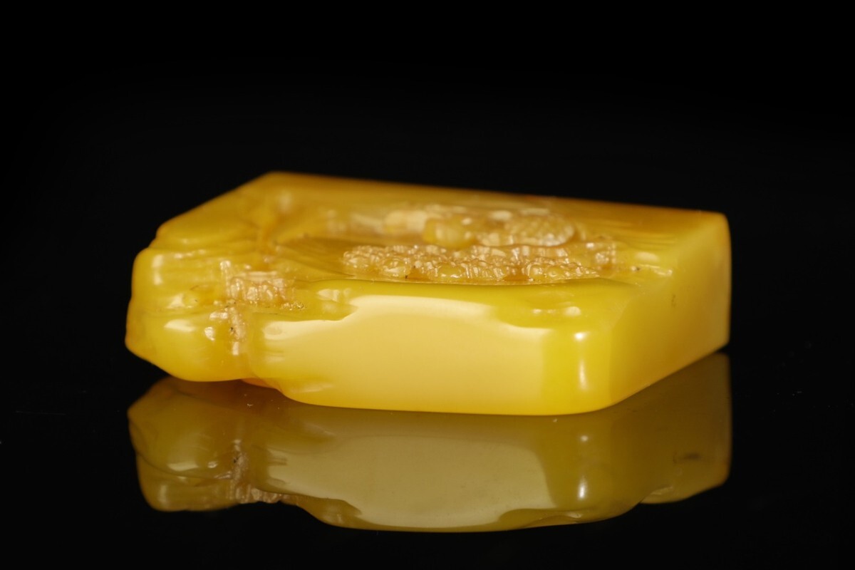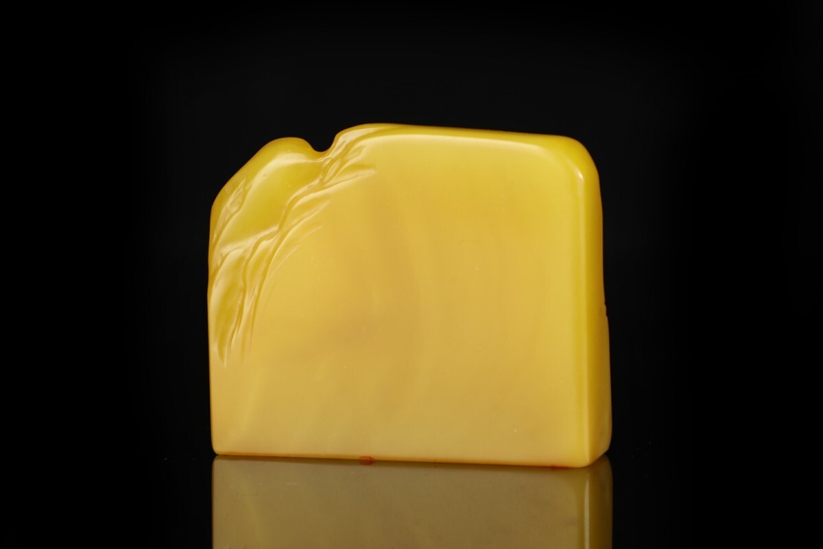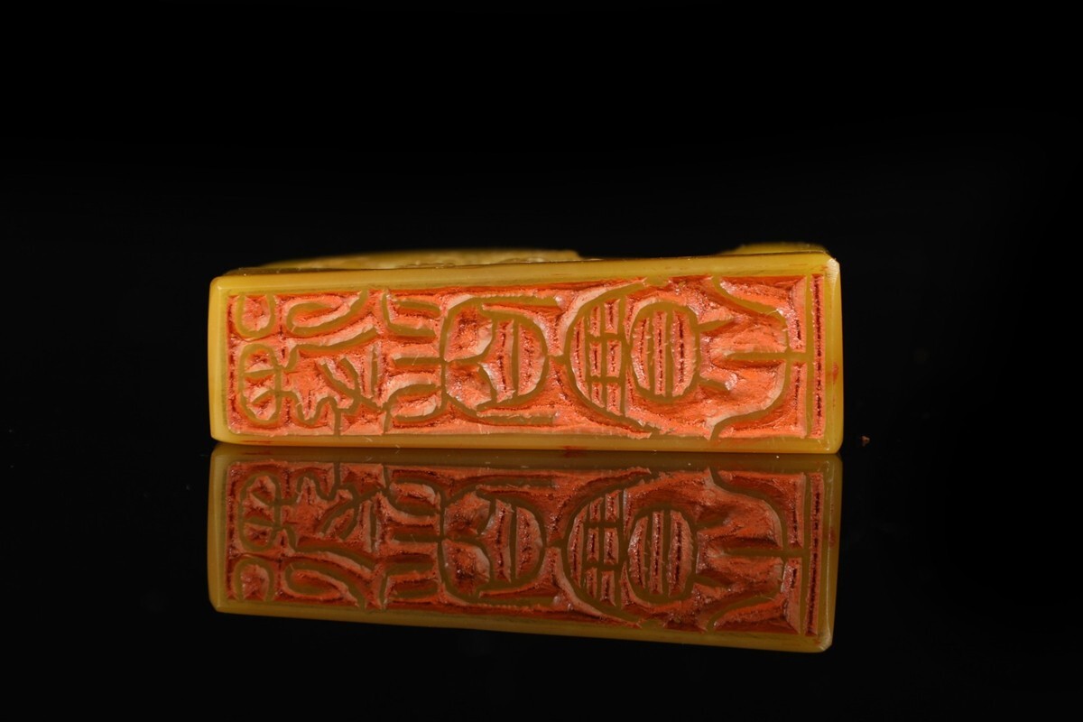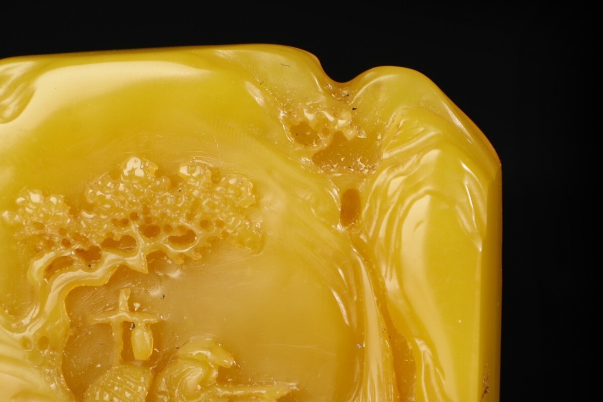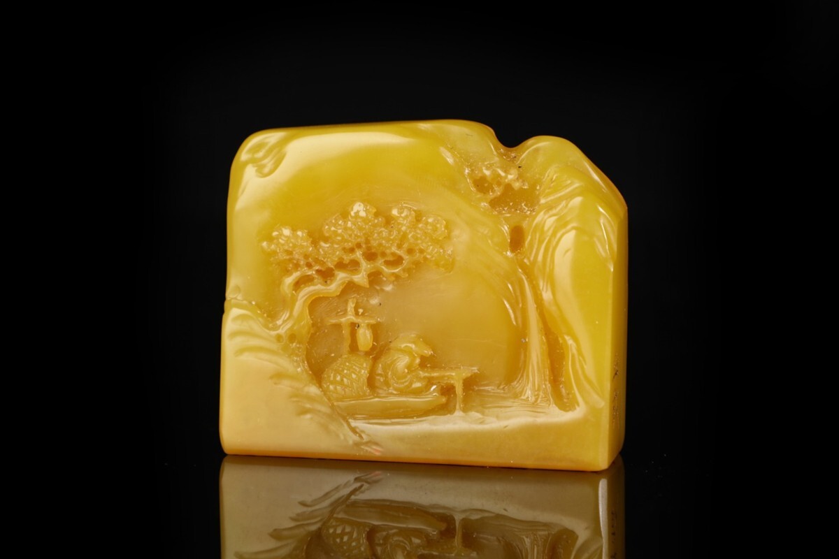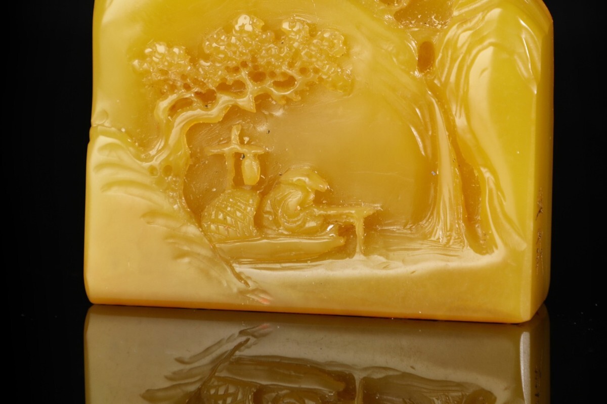「清 熙載 老寿山石 田黄石彫り 独釣山水 印章」極細工 擺件 古賞物 中国古美術 旧蔵出