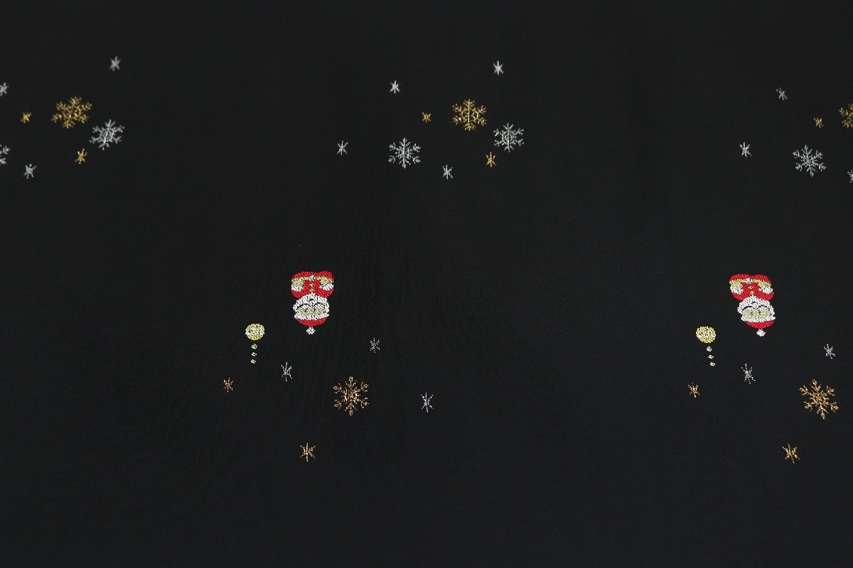 小さめの柄が並んで配されており、可愛らしい印象でございます。楽しげなクリスマスを思わせる素敵な柄行きでございます。パーティーにいかがでしょうか。