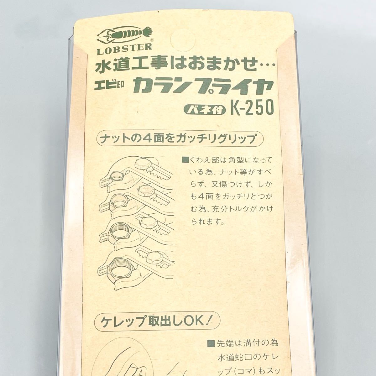 [送料全国一律360円] ロブスター カランプライヤ K-250 バネ付 ロブテックス エビ印 水道工事 工具 プライヤー LOBSTER 金物屋 在庫 未使用