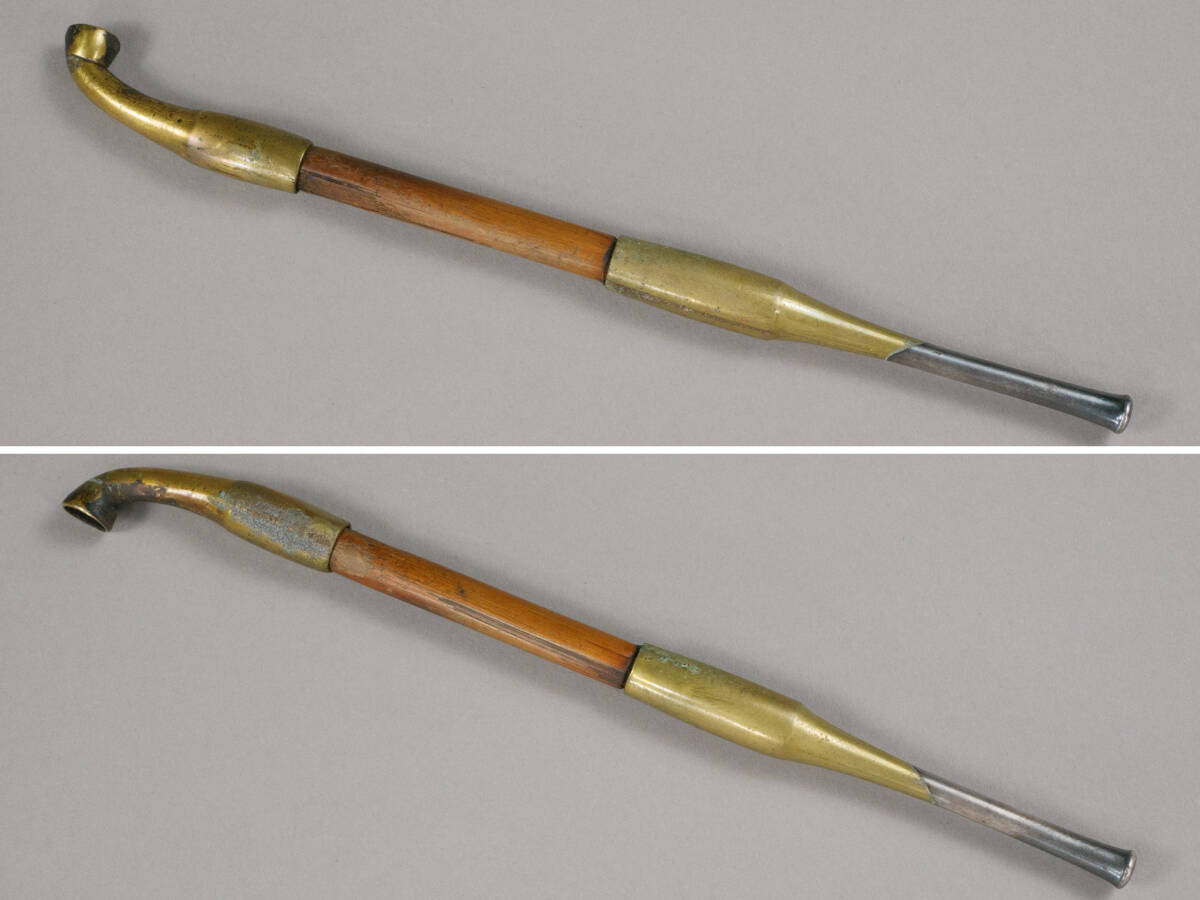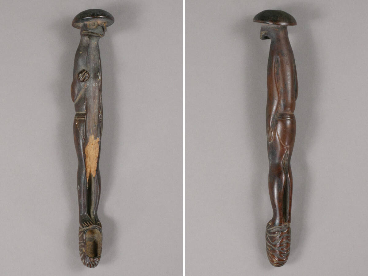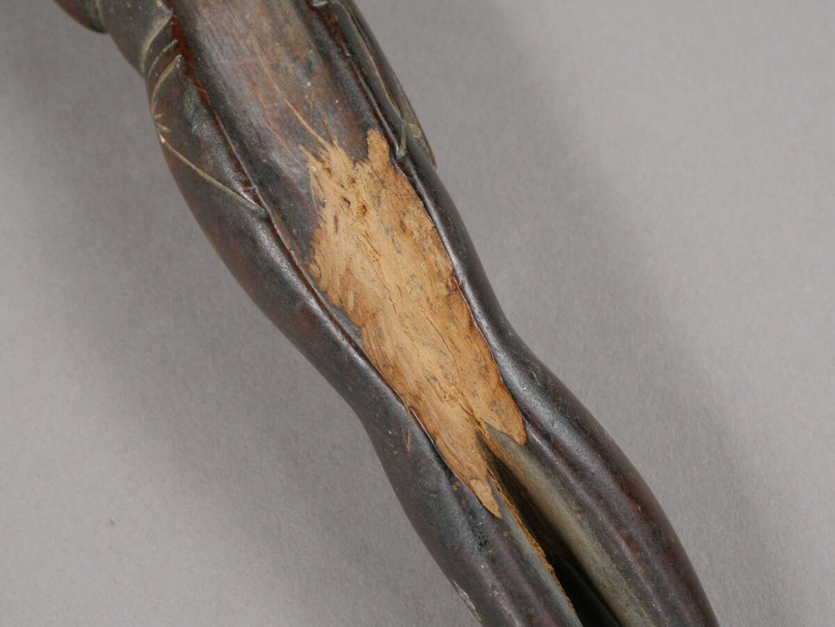 | <状態> ・煙管のサイズに合わせるために腿あたりが削られています。 ・目的は分かりませんが意図的につけられたピンホールのような小傷が2箇所あります。 ・古い品なので経年の傷み、汚れ等があります。 |