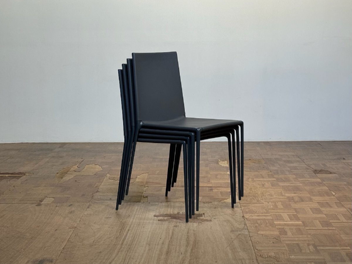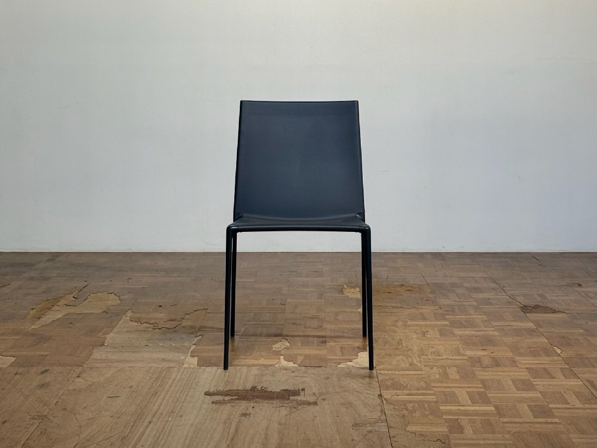 MAXALTO COLLECTION / マクサルト・コレクションが基調とする、空間に差し込む弱々しいメランコリーな陽光から生まれるシルエット美を追求し、アルミニウム構成で最高度に絞り込んだフレームの華奢な佇まいとシーティングのうっすらとしたミニマリズムデザインで、光が差し込んだ際に浮遊しているかのように見せる洗練された佇まいの、スタック可能なダイニングチェア。B&B Italia / MAXALTO より。