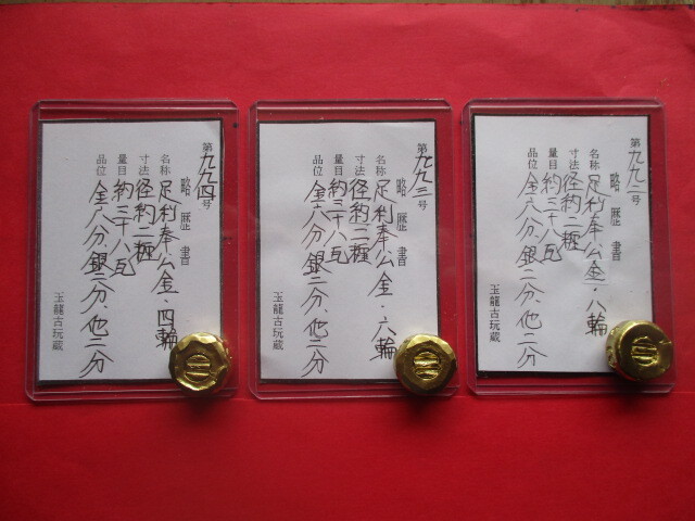 整理品・処分品3点一括 足利奉公金 四輪・六輪・八輪 室町時代