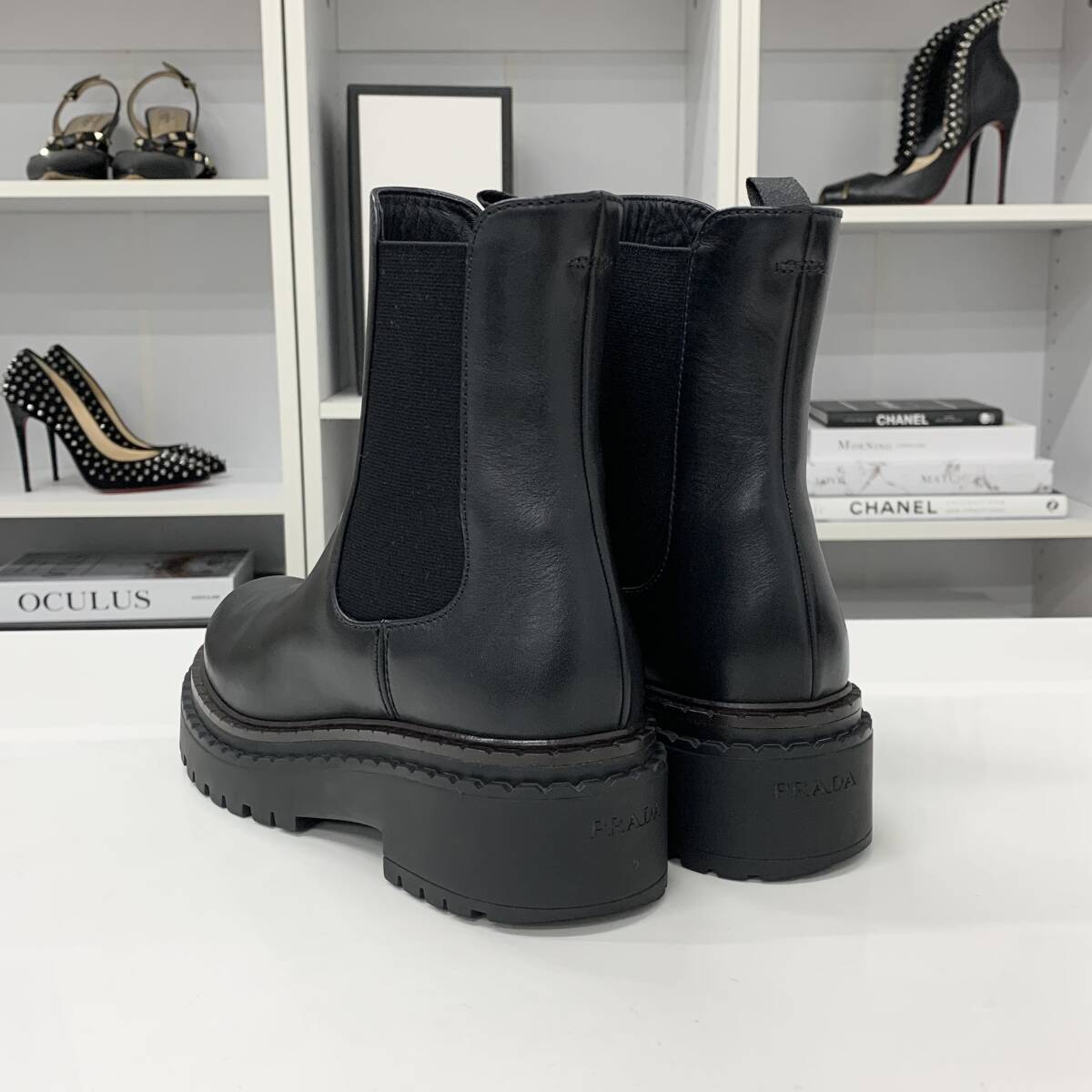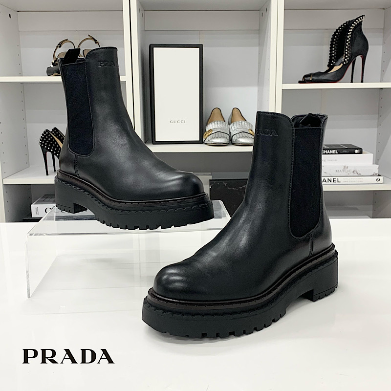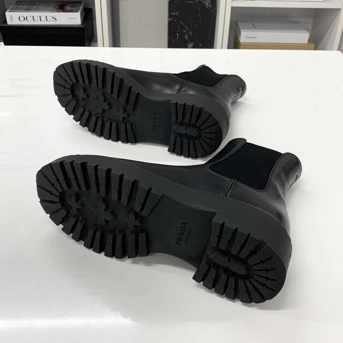 M13224 プラダ ロゴ レザー サイドゴア チェルシーブーツ ブラック