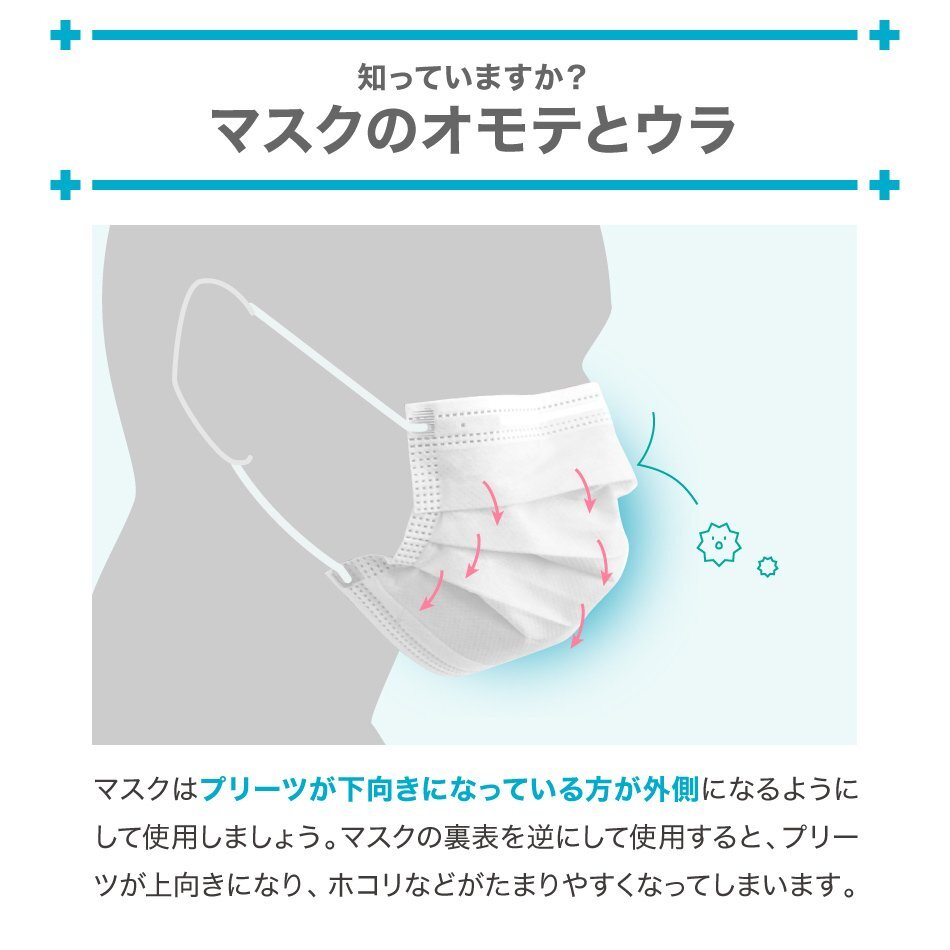 | 性能はもちろん、使用感にもこだわったマスクです。 3層の不織布構造でウィルス飛沫、ほこり、花粉等のミクロ粒子をシャットアウト。 上部に付いているノーズワイヤーが鼻周りの隙間をしっかりとカバーしてくれます。 介護、サービス業における感染症対策や花粉症対策、風邪、インフルエンザ等各種ウイルス対策に! 【商品詳細】 ◆内容:マスク 50枚入 ◆カラー:ホワイト ◆サイズ:(約)幅175mm×高さ95mm(ふつうサイズ 大人用 家庭用) ◆素材:ポリプロピレン不織布、耳ひも部分(ポリエステル) ◆素材:不織布、ポリエステル 3層構造 高密度フィルター ウイルス飛沫対策 花粉対策 PM2.5対策 ハウスダスト対策 ※代引き不可の商品です。 |