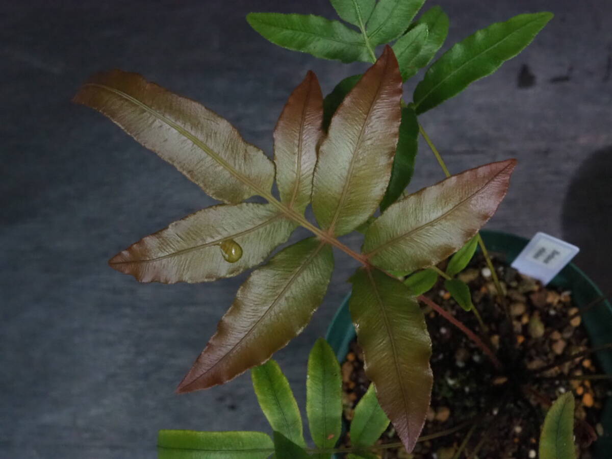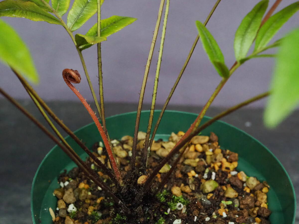 オーストラリア原産のシダ。新芽の赤色が美しい種。