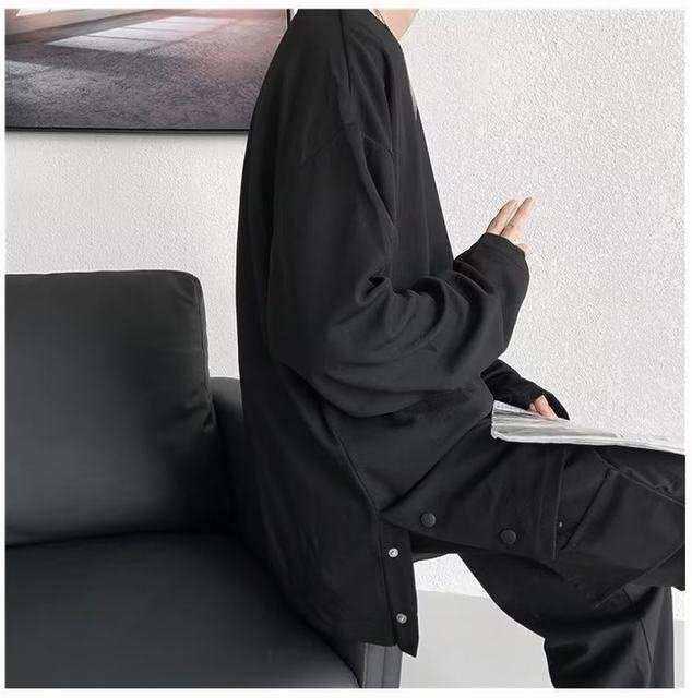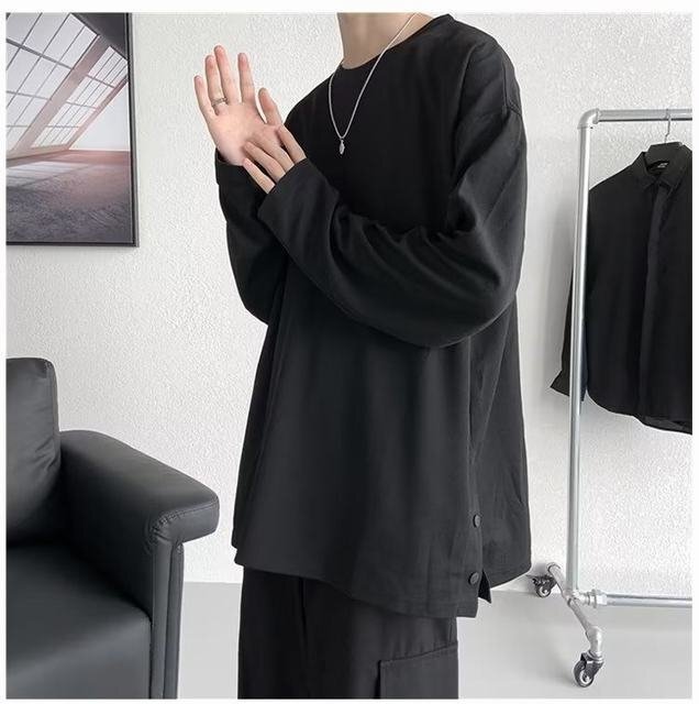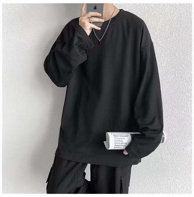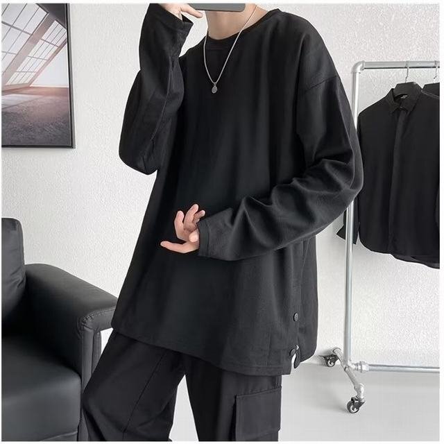 秋服Tシャツ メンズ 長袖 ロング 大きいサイズ カットソー 無地 シンプル インナー トップス ブラック 3XL