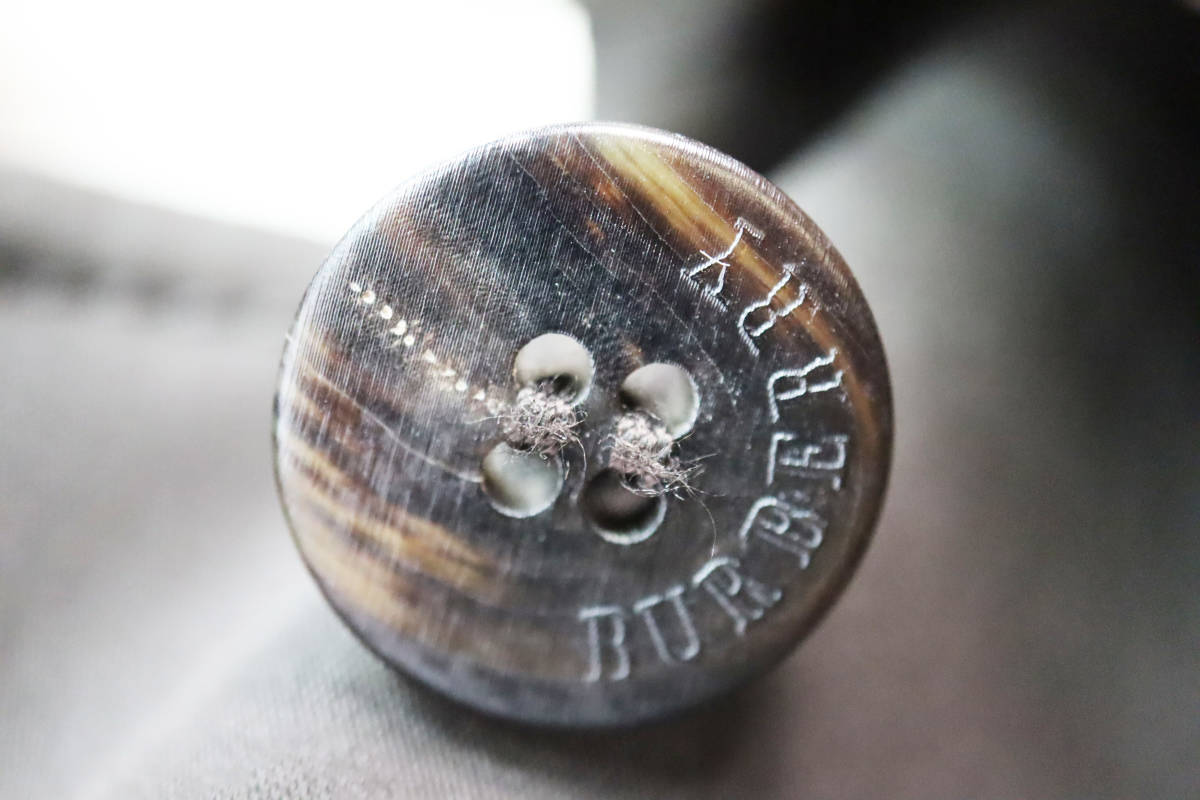 バーバリー(三陽商会)のライナー付きステンカラーコート。シンプルなシルエット。ライナーのエンブレムが美しいです。撥水加工。前立ては、比翼。ボタンのみ。 | ||||||
