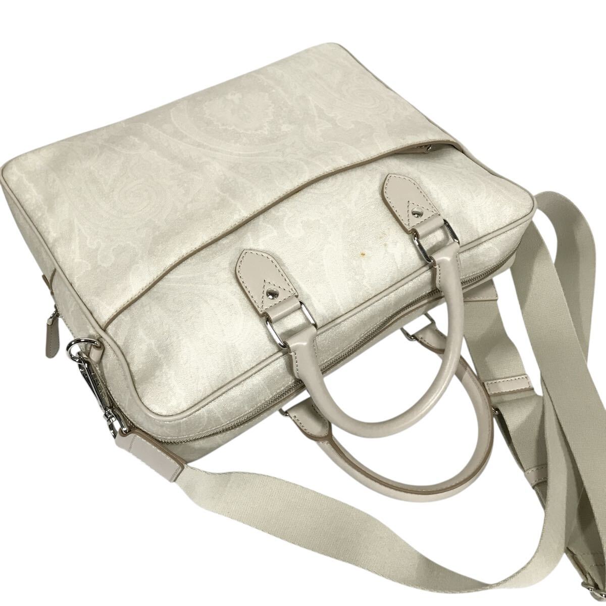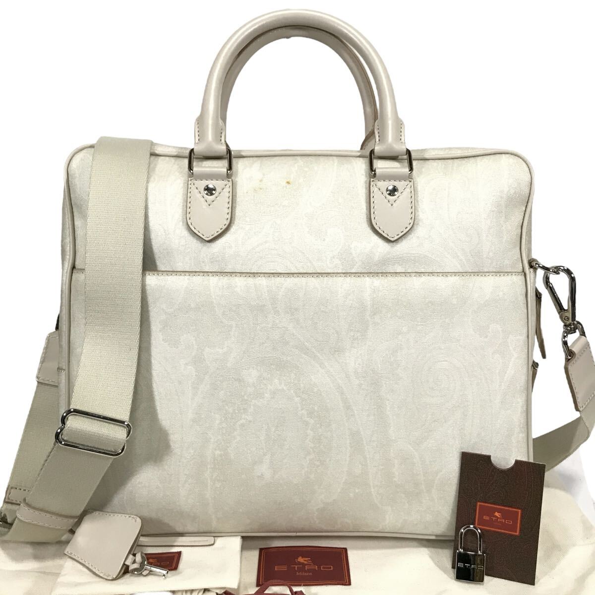 【エトロ】本物 ETRO ペイズリー柄 ビジネスバッグ 2way ショルダーバッグ 南京錠 鍵 ブリーフケース PVC×レザー メンズ レディース 伊製