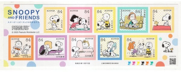 ★ グリーティング切手 2023年 スヌーピーとピーナッツのなかまたち 84円 シール式 シート 未使用 ★