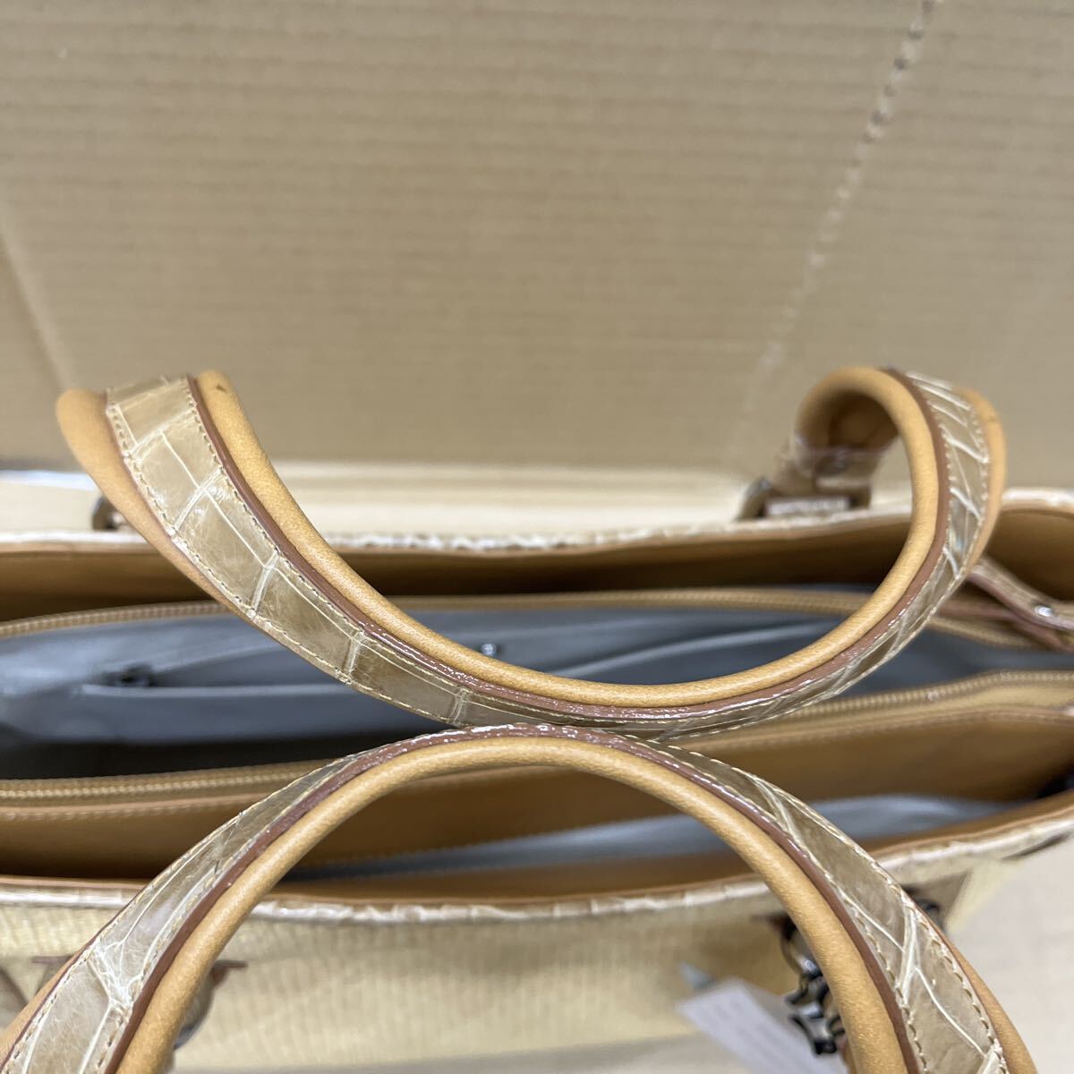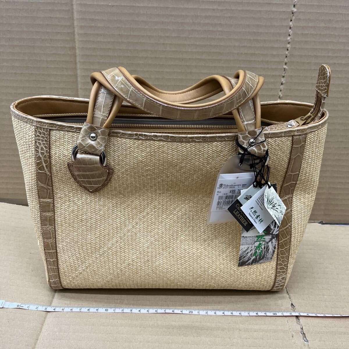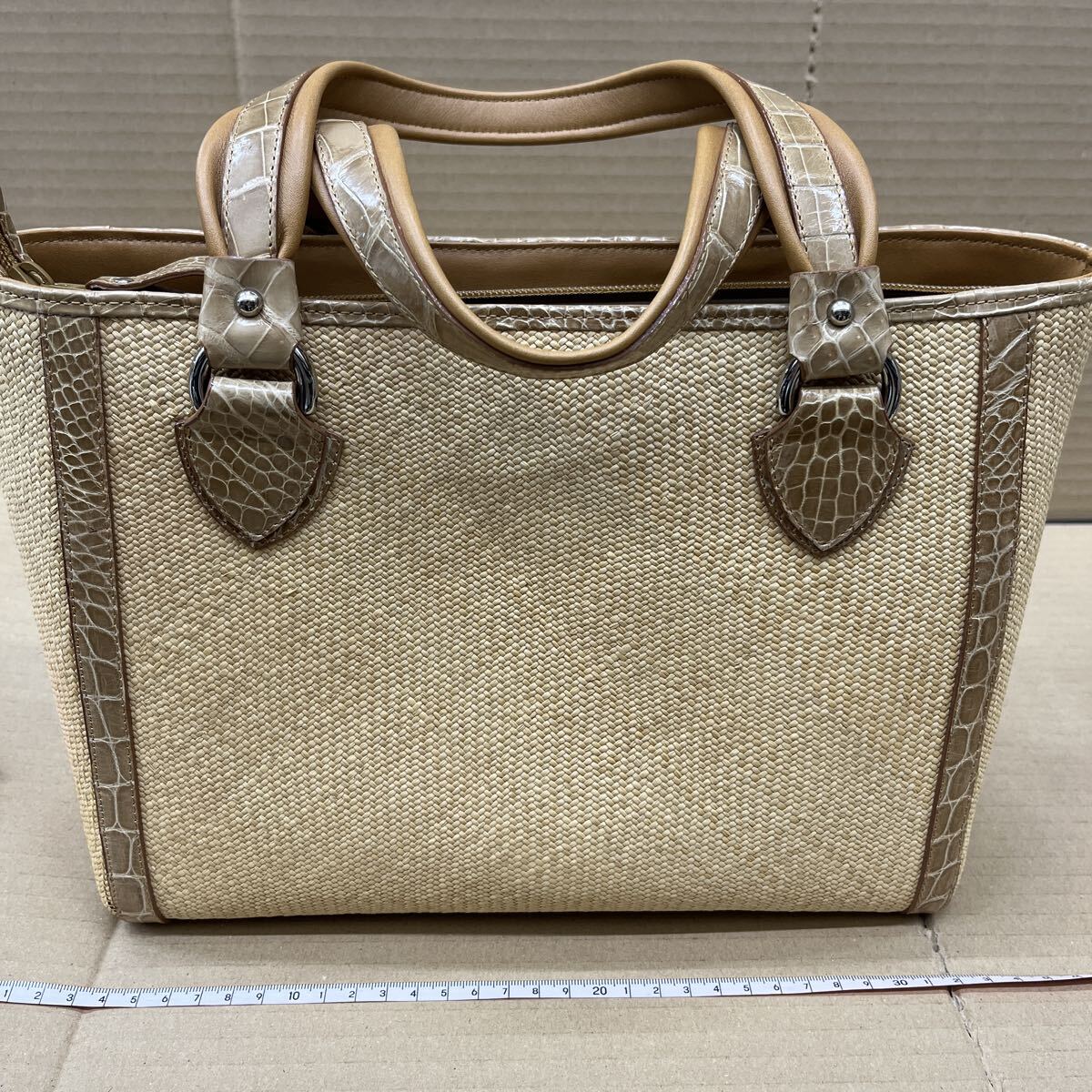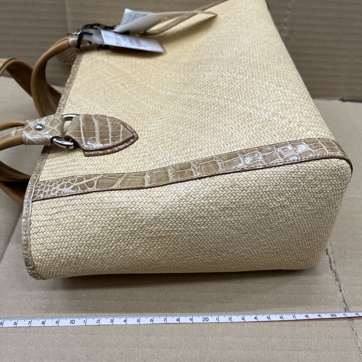 R10167/【保管美品】BISMO CITES クロコダイル ハンドバッグ トートバッグ ベージュ 天然素材 レザー A09173ETX EXW002-49 パナマシート