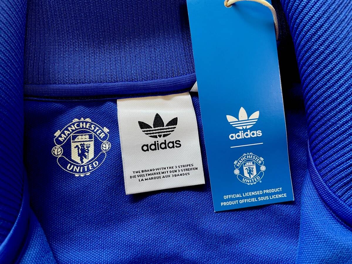 このマンチェスター・ユナイテッドのスリムなトラックトップは、