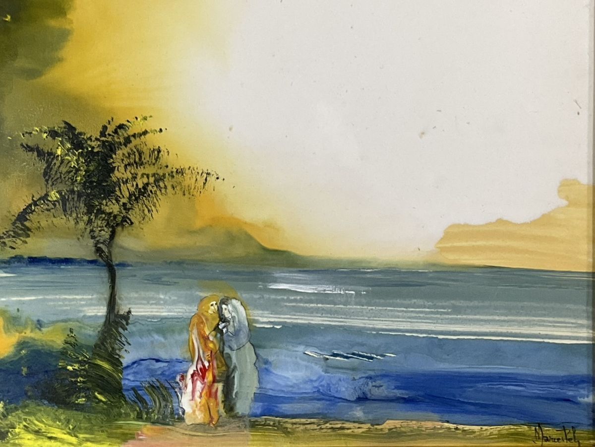 真作■油彩■マークエステル Marcestel■『あなたのそばへ』■幻想的色彩名画 ■個性派巨匠■人気作家■1c の出品となります。