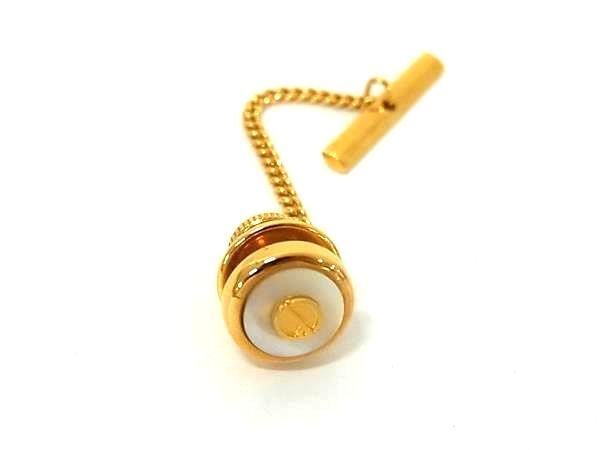 ■極美品■ dunhill ダンヒル ネクタイピン タイチェーン アクセサリー 紳士 メンズ ゴールド系×ホワイト系 DF9402