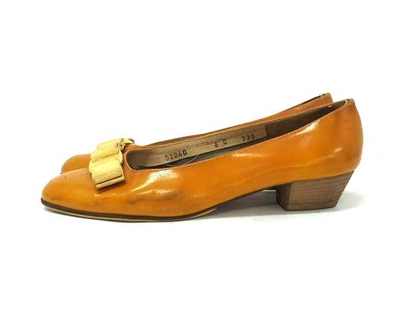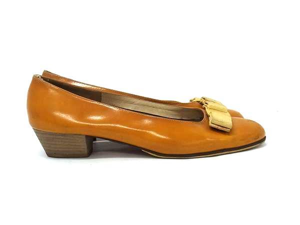 Salvatore Ferragamo フェラガモ 02240 ヴァラリボン レザー ヒール パンプス 表記サイズ8 (約25.0cm) 靴 シューズ キャメル系 DJ0869