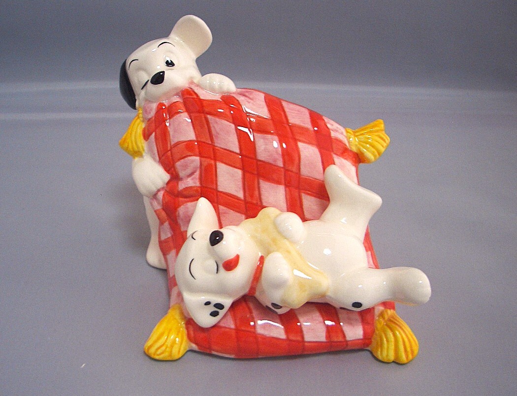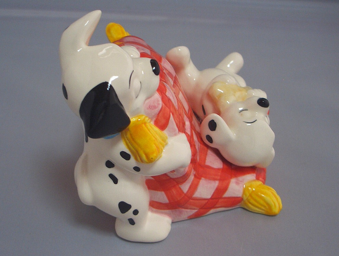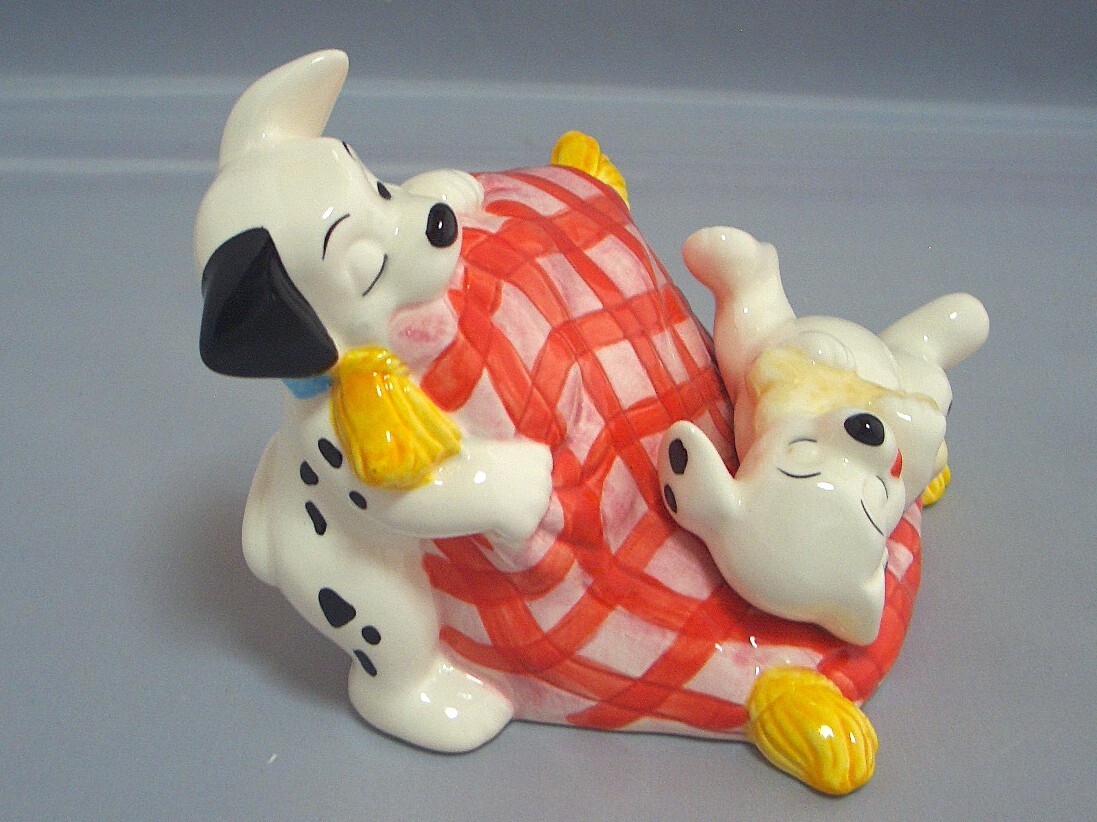 【仔犬のじゃれあい可愛い】Walt Disney 101匹わんちゃん 仔犬の陶器置物 貯金箱