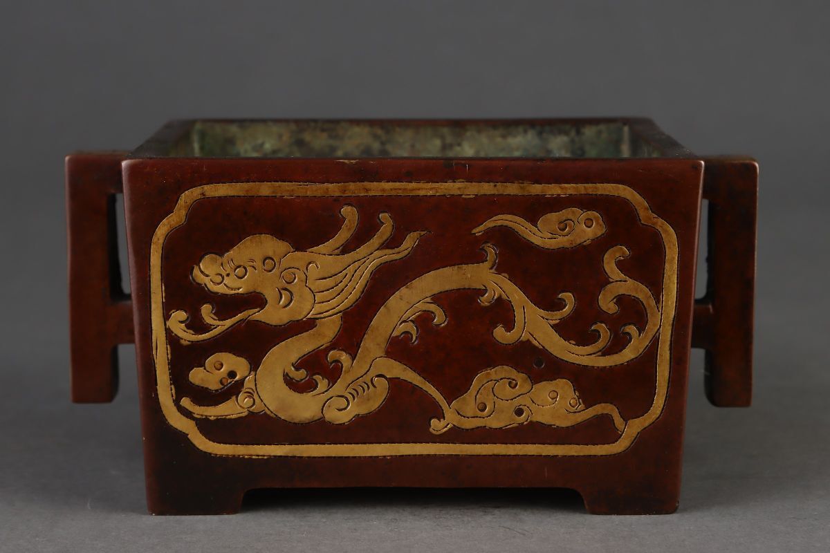 【永】明時代 大明宣德年製 古銅塗金 龍紋 戟耳馬槽爐 極細工 古銅彫 置物擺件 古美術品 時代物 古董品 収集 古美味 旧家蔵出 中国唐物 A22