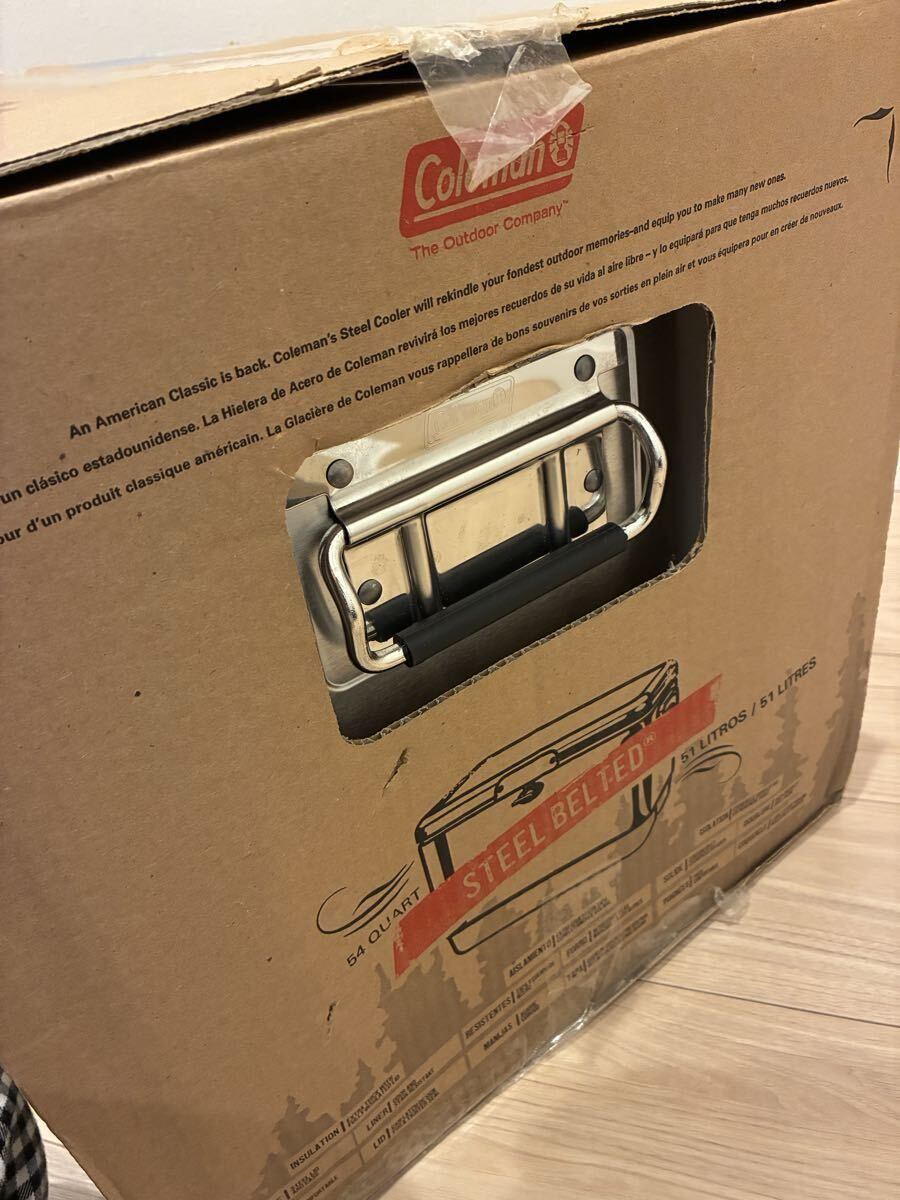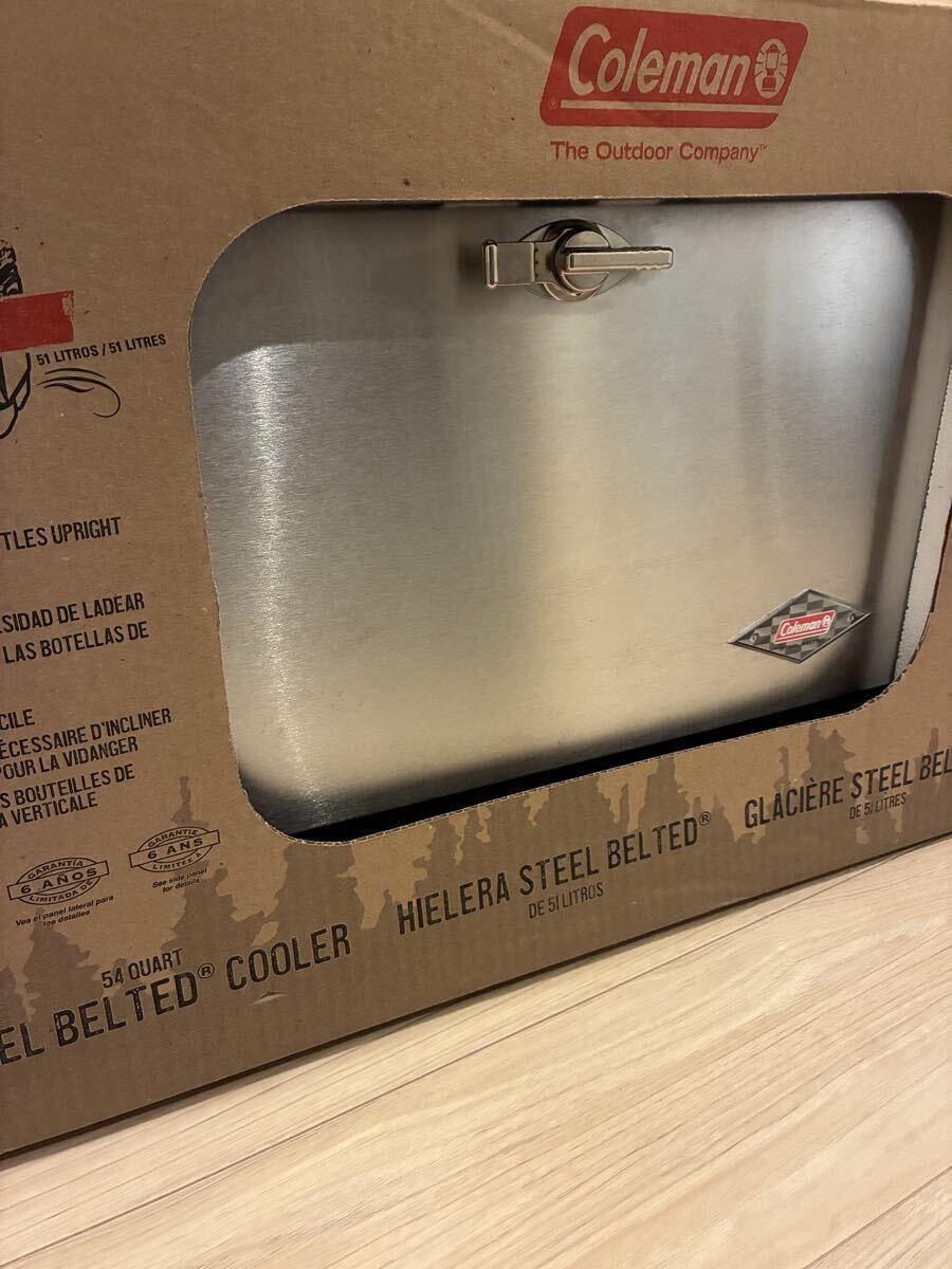 新品 未使用 コールマン アメリカ製 スチールベルトクーラー ステンレスです。